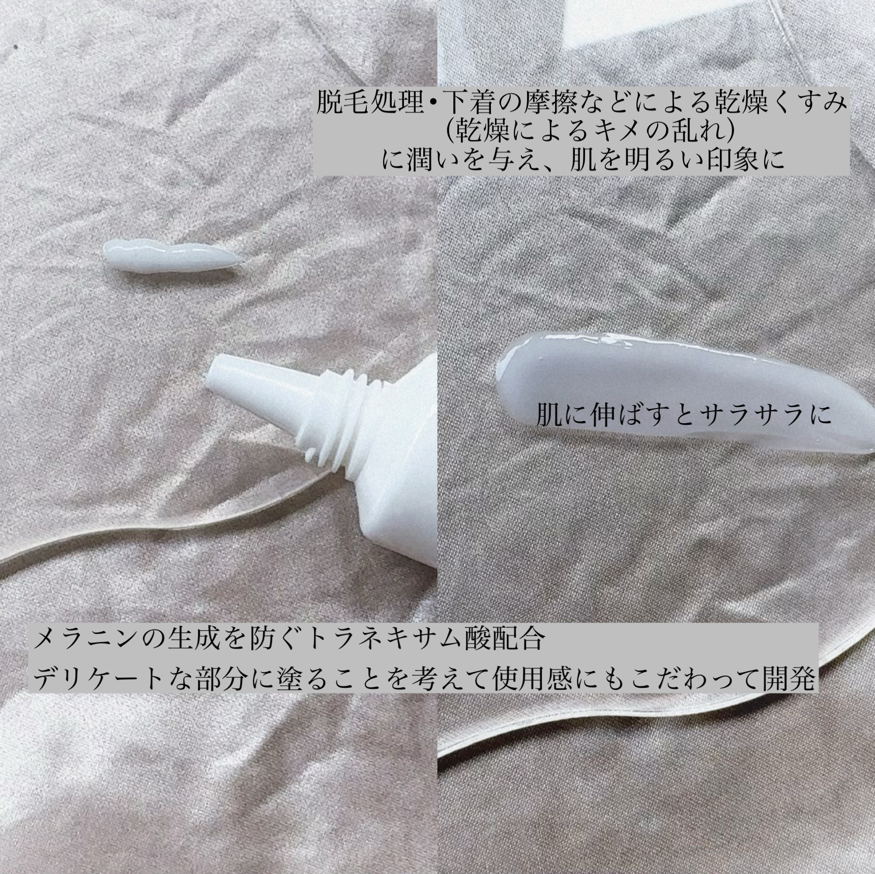 乾燥くすみにうるおいを与え、明るい印象へ なめらかで伸びの良いクリームテクスチャー しっかりうるおうのにべたつきにくい 脱毛後のケアやデリートな部位のケアにおすすめです。