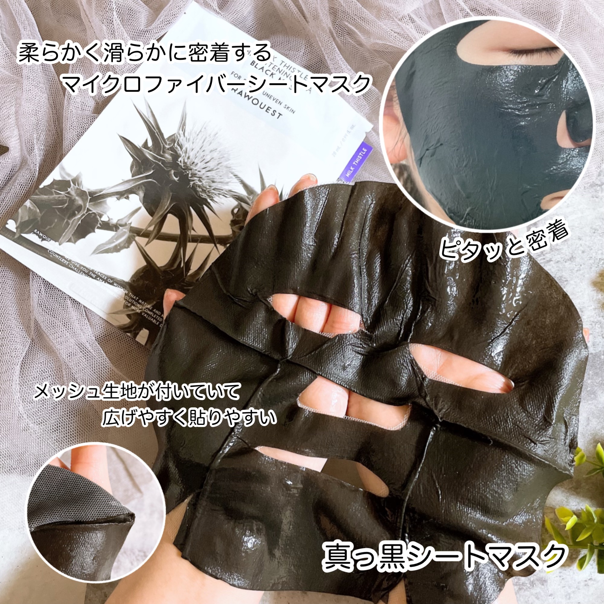 RAWQUESTミルクシスルブライトニングスパブラックマスク日焼けし肌の水分補給のために冷蔵庫に眠っているシートマスクを1日1枚使ってます。今回は、RAWQUEST!ブラックトリュフ成分配合!ミルクシスルブライトニングスパブラックマスクのシー...