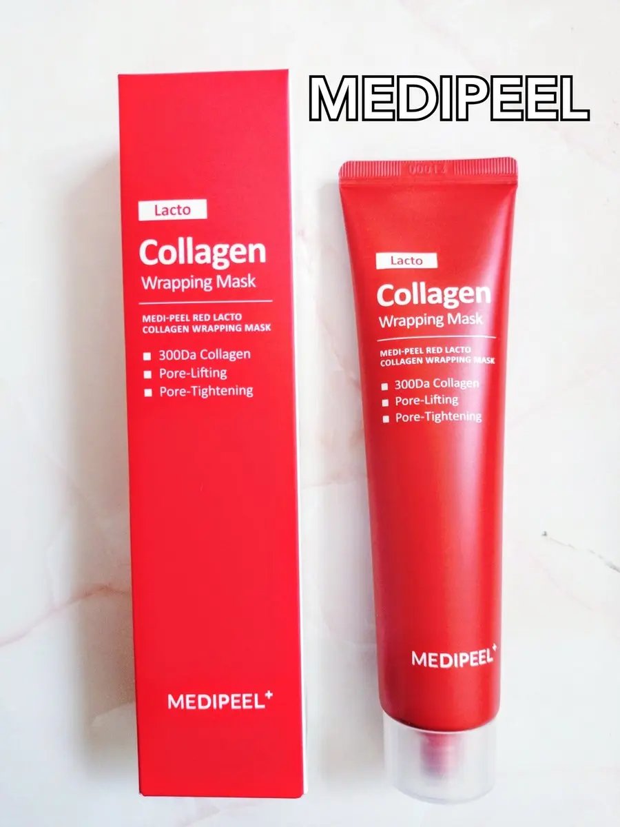 MEDIPEELレッドラクトコラーゲンラッピングマスク🐼塗るコラーゲンってめちゃめちゃ惹きあるワードよねw毛穴より小さい超低分子コラーゲンを70.2%配合🧪今流行りの塗ったら顔に密着してオーダーメイドのマスクになってくれやつ✨これ塗りやすかっ...