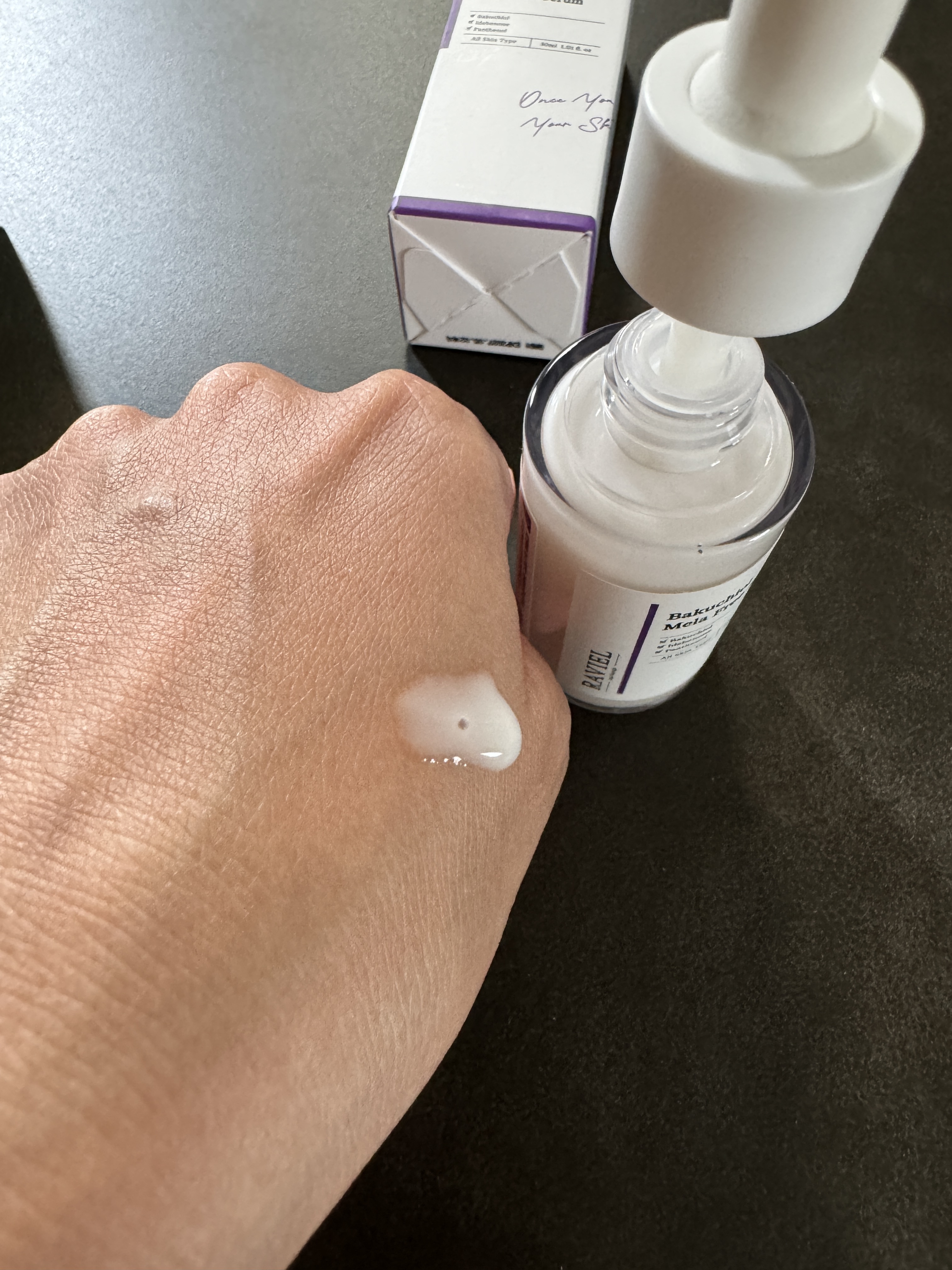 ラビエルバクチオールセラム♡植物性レチノールと強力抗酸化でお肌の弾力や色素沈着にアプローチ✊🏻ナイアシンアミドやβカロチンなど12種類のビタミンコンプレックスも配合♪ほんのりとろみがありつつも、みずみずしくて、肌馴染みの良いテスクチャー😊使い...