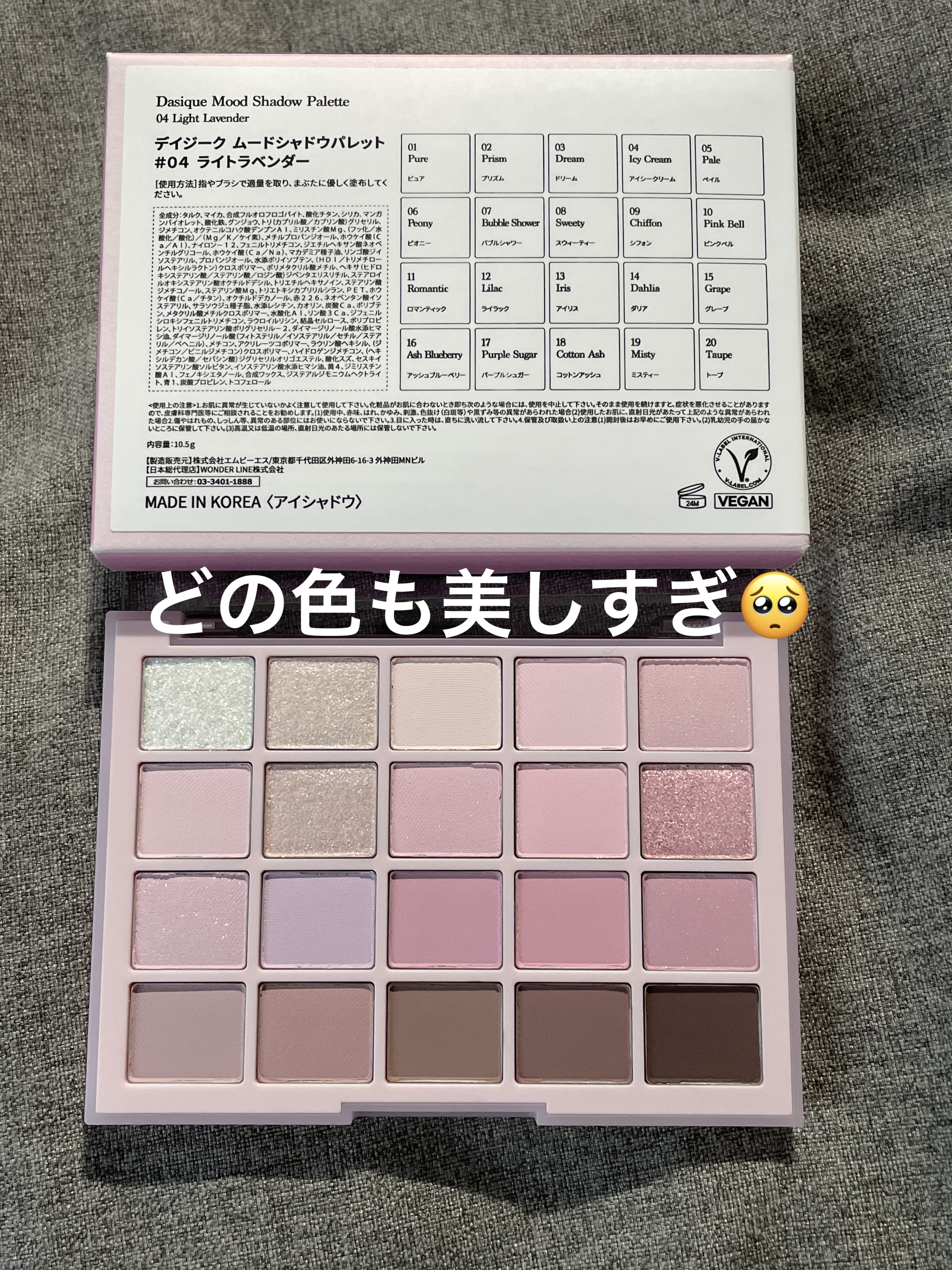 - デイジーク初の20色シャドウパレット。パーソナルカラーに合わせて選べる。 マット、シーマー、グリッターなど様々なテクスチャーが勢揃い その日の気分やファッションに合わせて多様なメイクが可能。 これひとつで様々な色とラメを組み合わせたグラデーションが楽しめます。