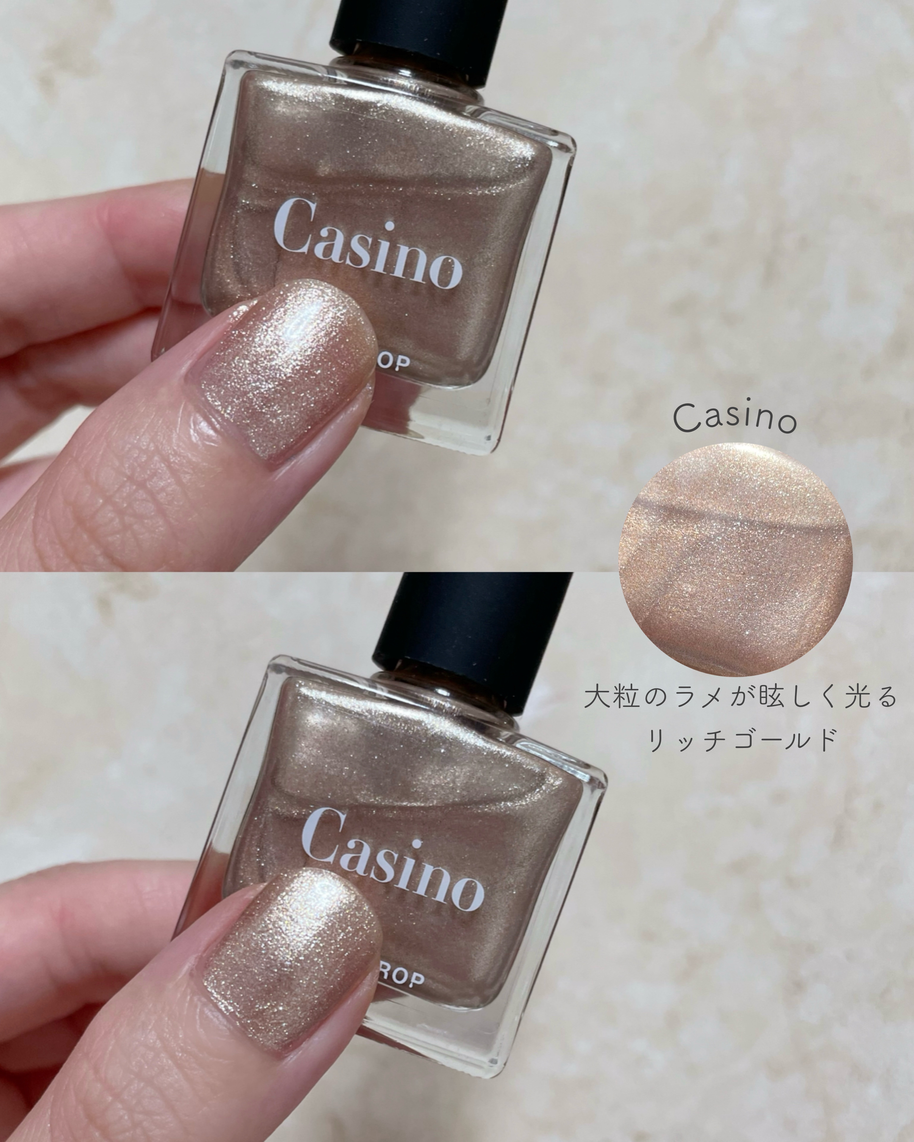 - "モチの良さ"にこだわった処方で、ベースコート無しでもしっかりと爪に密着し、 塗りたての美しさが長く続きます。なめらかな塗り心地で、ムラなく美しく塗れるテクスチャ。