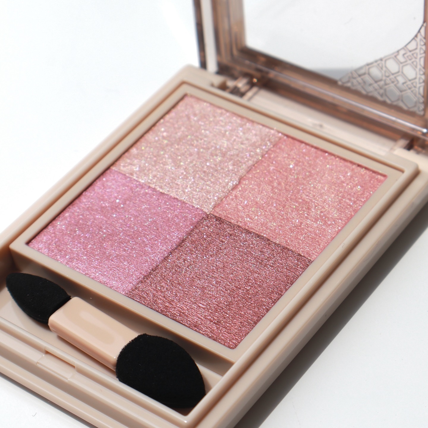宝石箱でも開いたんか?ってくらいキラッキラで。 上の2色はシルバーラメを中心とした煌めき達がとにかく華やか。 ダイヤモンドかと錯覚するくらいどの角度から見てもまばゆい輝き。 左下のバーガンディにはゴールドパールがちらっと覗いててとにかく美しい🌹 奥行きをあたえながら他カラーを上手くまとめて一体感のあるメイクに仕上げてくれる、ふわりとしたブラウンのニュアンスを感じるダスティピンクのマットカラーも大事大事! 華やかで深みのある大人っぽい仕上がりのロージーな青みピンクとにかく好み過ぎてドツボだった。 ピンク系使うと浮いちゃうよ😭😭という方に是非とも試してもらいたい。 ロージーさと深みがあるから浮かないし、使いこなせるピンク系のアイシャドウは(私にとっても)貴重。 大人っぽいピンクアイシャドウだけどどこか可愛らしさもあって女性らしさ溢れる感じが作れてお気に入り🫶🏻