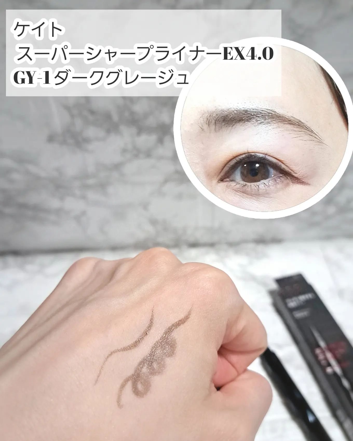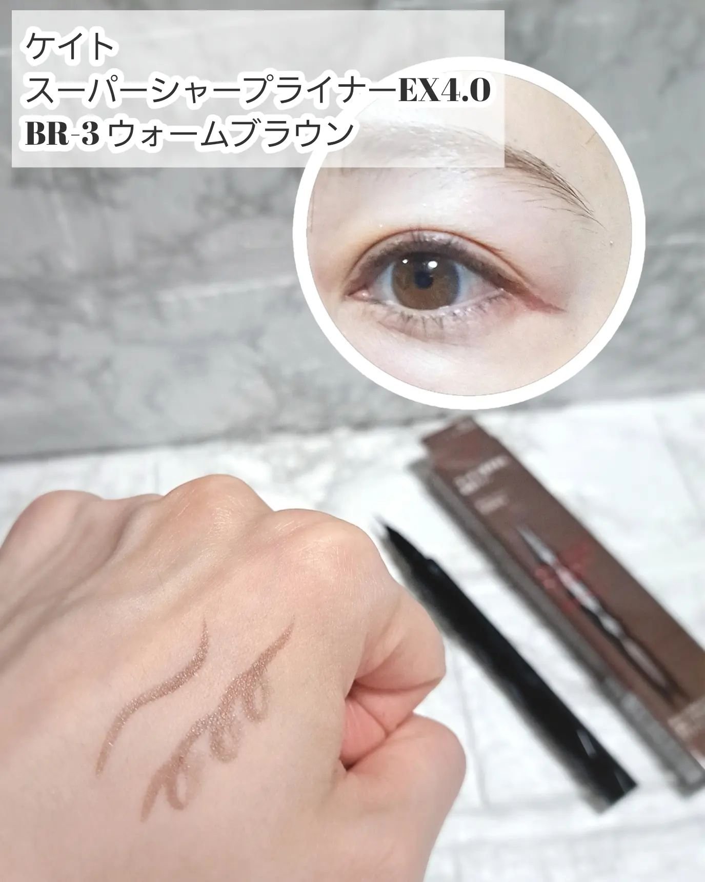 簡単、ブレない極細ラインが描ける アイライナーと言えば.... “KATE スーパーシャープライナーEX 4.0” 今回の数量限定色はニュアンスカラーを楽しめる “新次元なじみブラック” ブラックでも、ただのブラックじゃないんです! 失敗しにくく、ブレずに思い通りの極細ラインが簡単に描けるのが嬉しい! 本当に使いやすくて一度使うと虜に。
