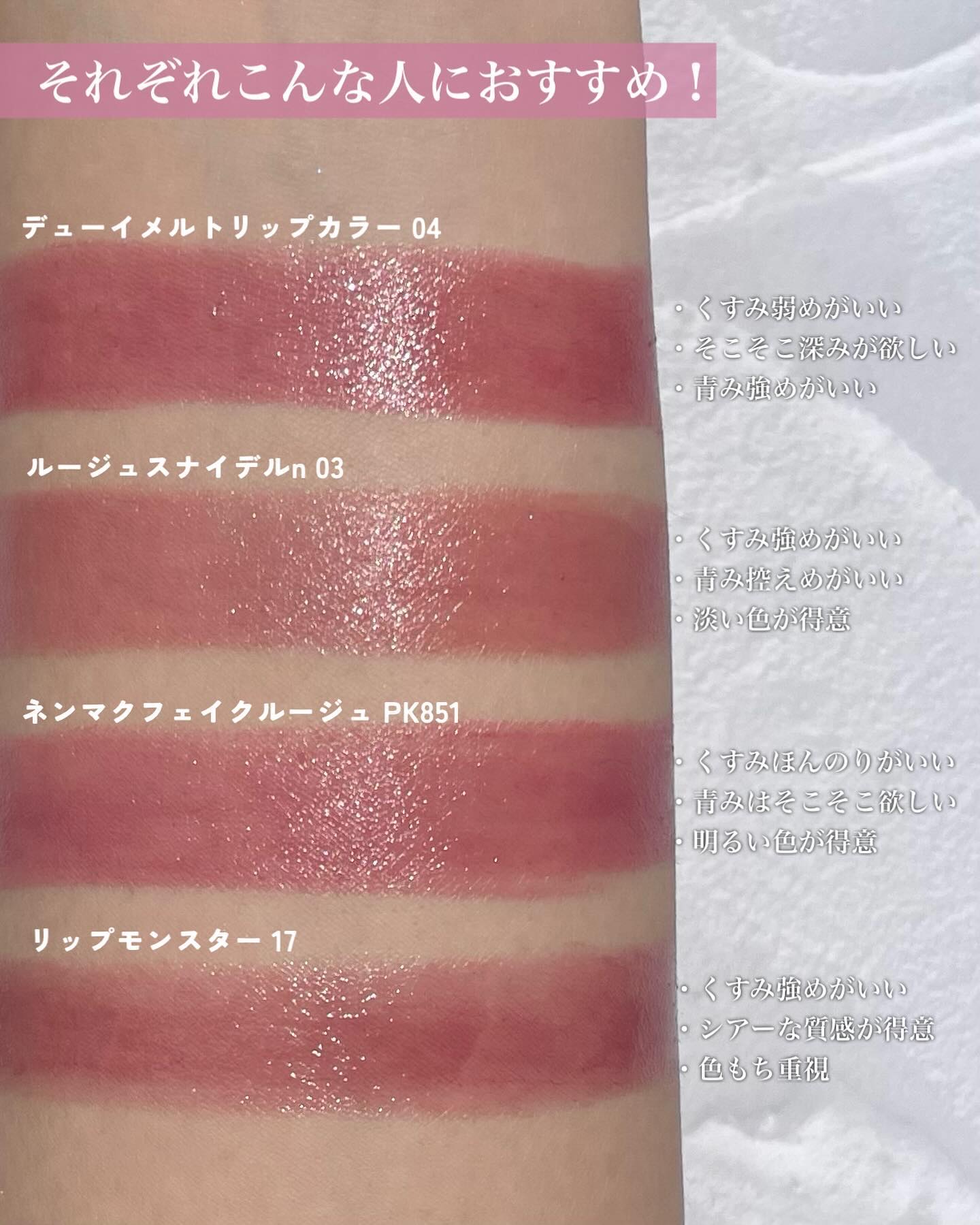 | 口紅・グロス・リップライナーランキング第11位 | 全色どこかまろやかさを感じる発色で デイリー使いしやすい粘膜の延長のようなカラー | 詳細を見る | |
