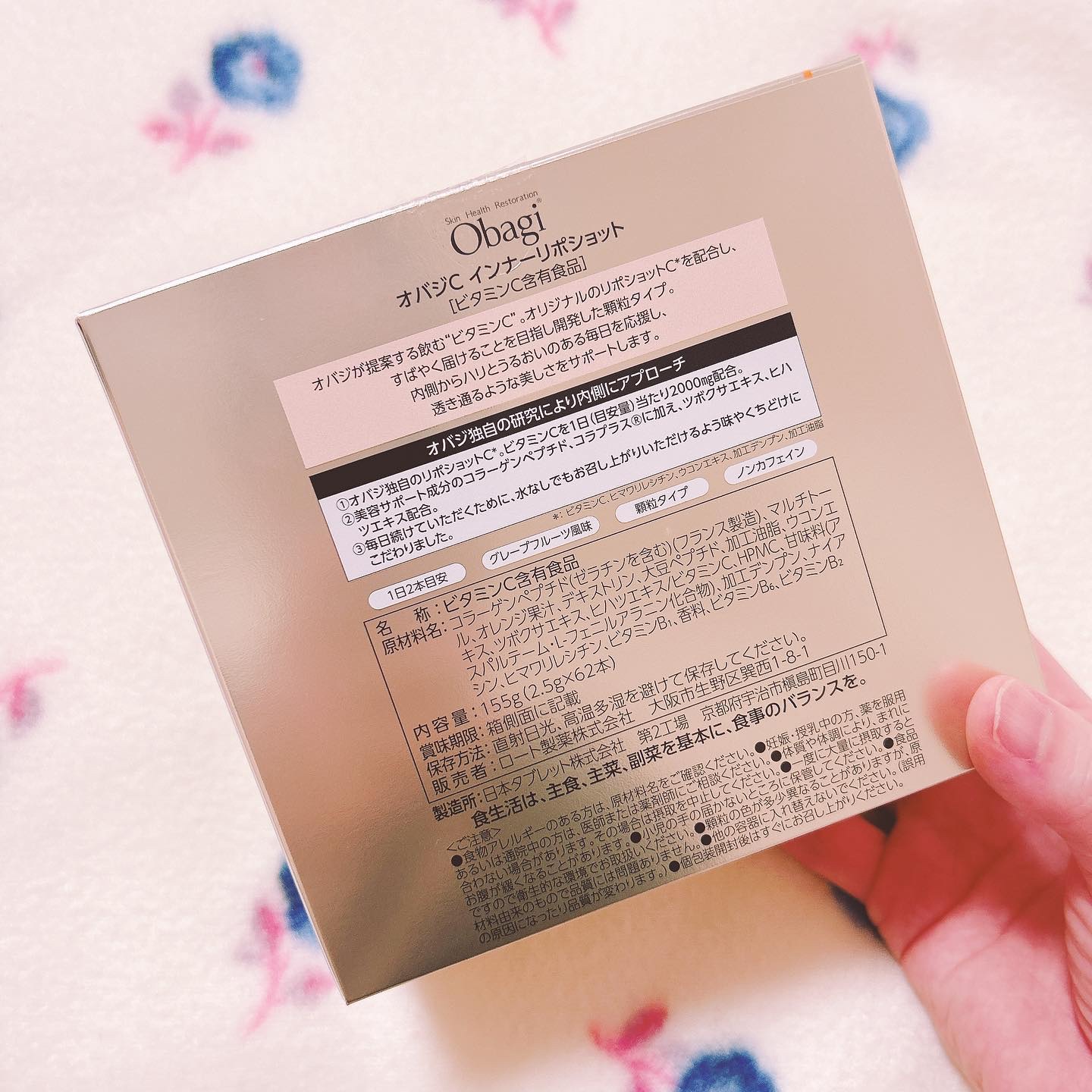 - オバジが提案する飲む“ビタミンC”。オリジナルのリポショットC*を配合し、すばやく届けることを目指し開発した顆粒タイプ。内側からハリとうるおいのある毎日を応援し、透き通るような美しさをサポートします。 <オバジ独自の研究により内側にアプローチ> 1. オバジ独自のリポショットC*。ビタミンCを1日(目安量)当たり2000mg配合。 2. 美容サポート成分のコラーゲンペプチド、コラプラス®に加え、ツボクサエキス、ヒハツエキス配合。 3. 毎日続けていただくために、水なしでもお召し上がりいただけるよう味やくちどけにこだわりました。 ・グレープフルーツ風味 ・顆粒タイプ ・ノンカフェイン *ビタミンC、ヒマワリレシチン、ウコンエキス、加工デンプン、加工油脂