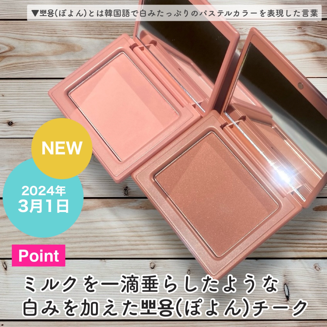 - 柔らかいベルベットパウダーがムラなく密着し、 くすみにくく明るい印象が続くブラーリングチークです。
