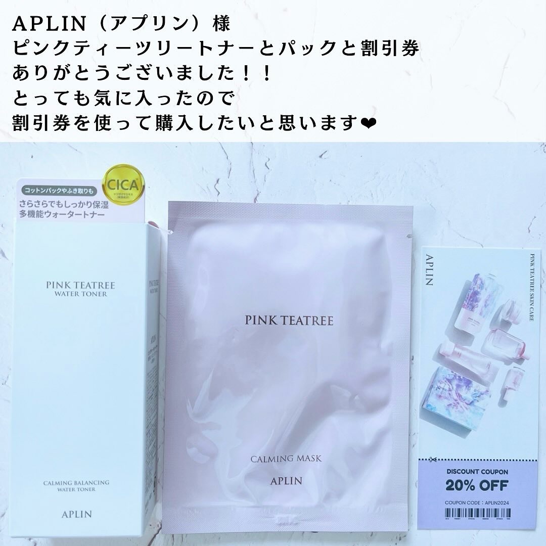APLINピンクティーツリートナーピンクツリー&シカ成分➡️素早い鎮静効果ビフィダ発酵ろ過&発酵溶解物➡️ニキビ等で荒れた肌を健康的に保湿強化➕鎮静ビタミンB12成分がピンク色を持つビタミンの1つなのでピンク色は有害な人口色素は使用❌さっぱり...