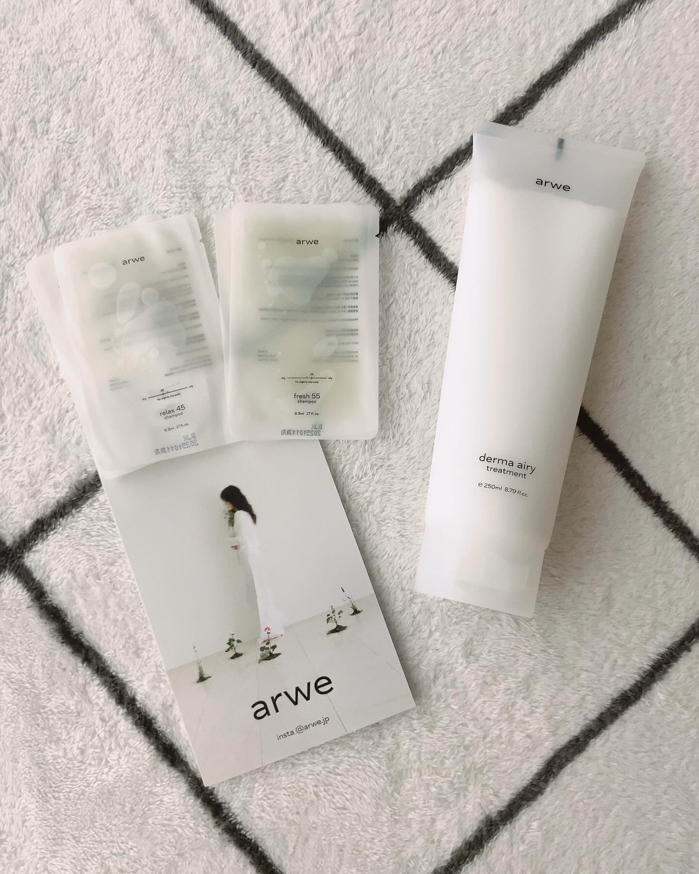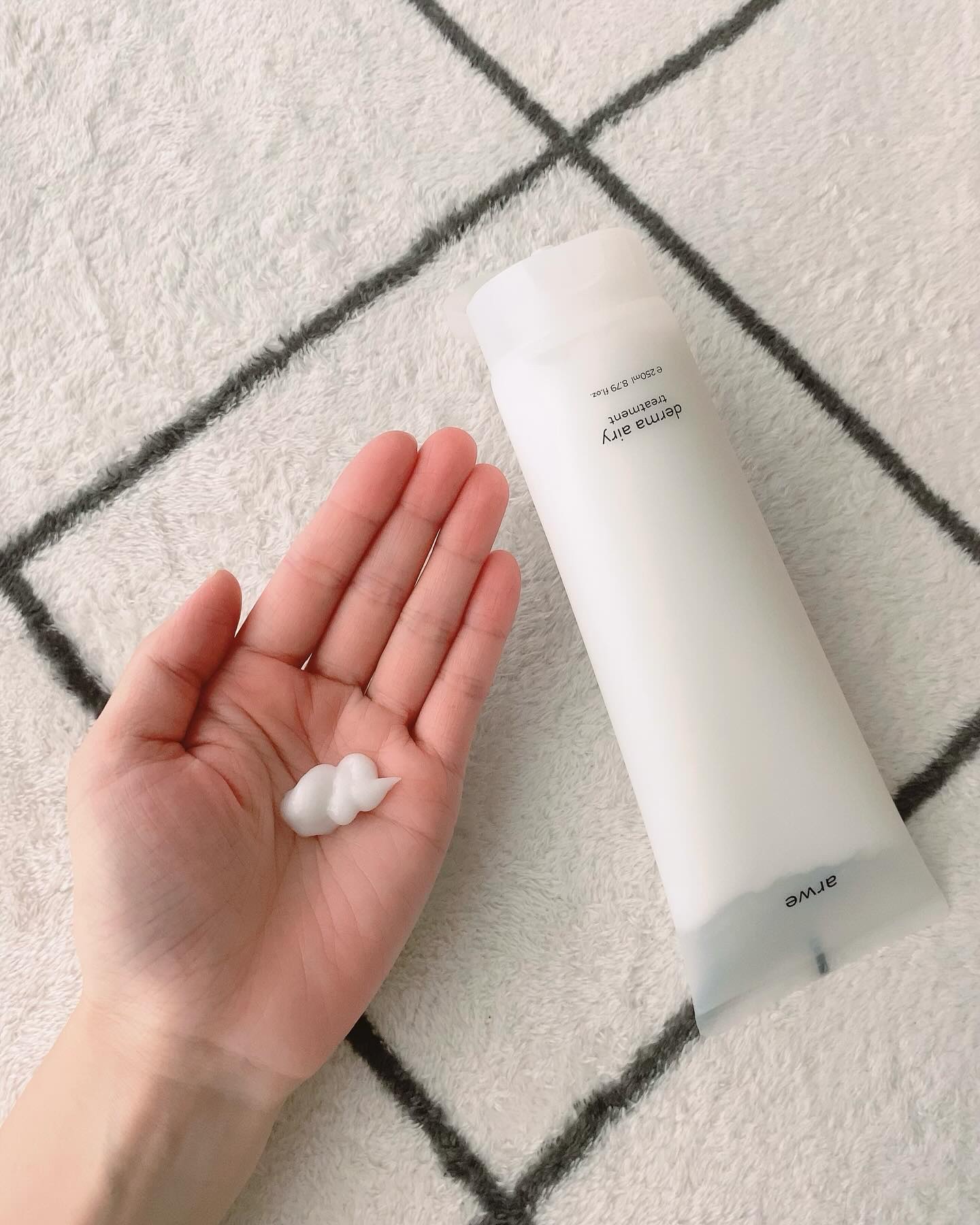 無香、無色、無シリコンの韓国ビーガン ヘア&ボディケアブランド arwe(アルベ)の〖derma airy treatment(250mL.)〗 髪に潤いを与え、しっとりし軽い髪にしてくれる♪ 脱毛症状緩和機能性商品☆
