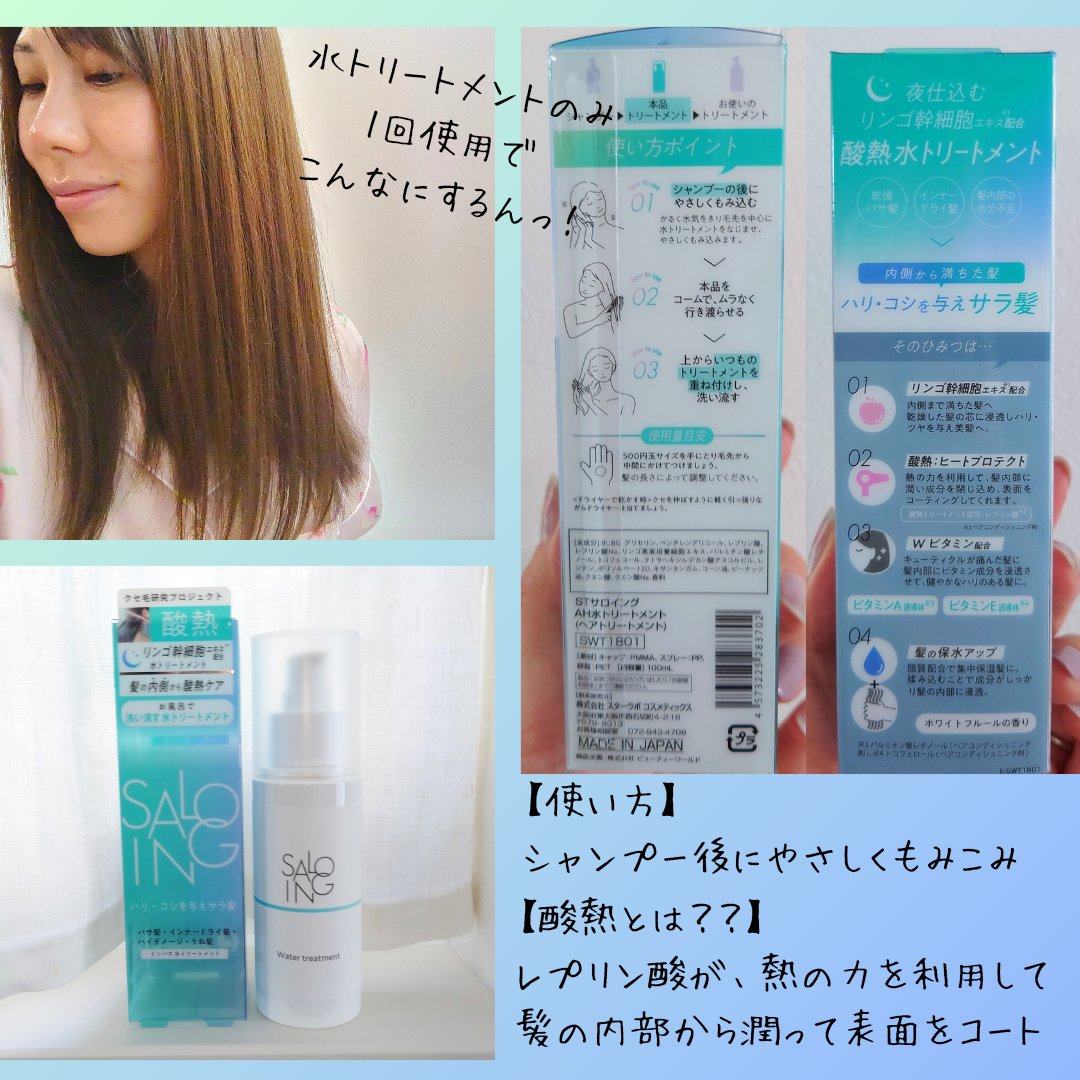 リンゴ幹細胞エキス配合の水トリートメント🩵 お風呂で使うトリートメントで シャンプー後といつものトリートメントの前に つける水トリートメント👍 ヒートプロテクトで熱の力で 髪にうるおいを閉じ込めて表面をコーティング👌 朝のスタイリングにも使える💗 ハリコシを与えてくれて ヒートプロテクトがとてもお気に入り🩵