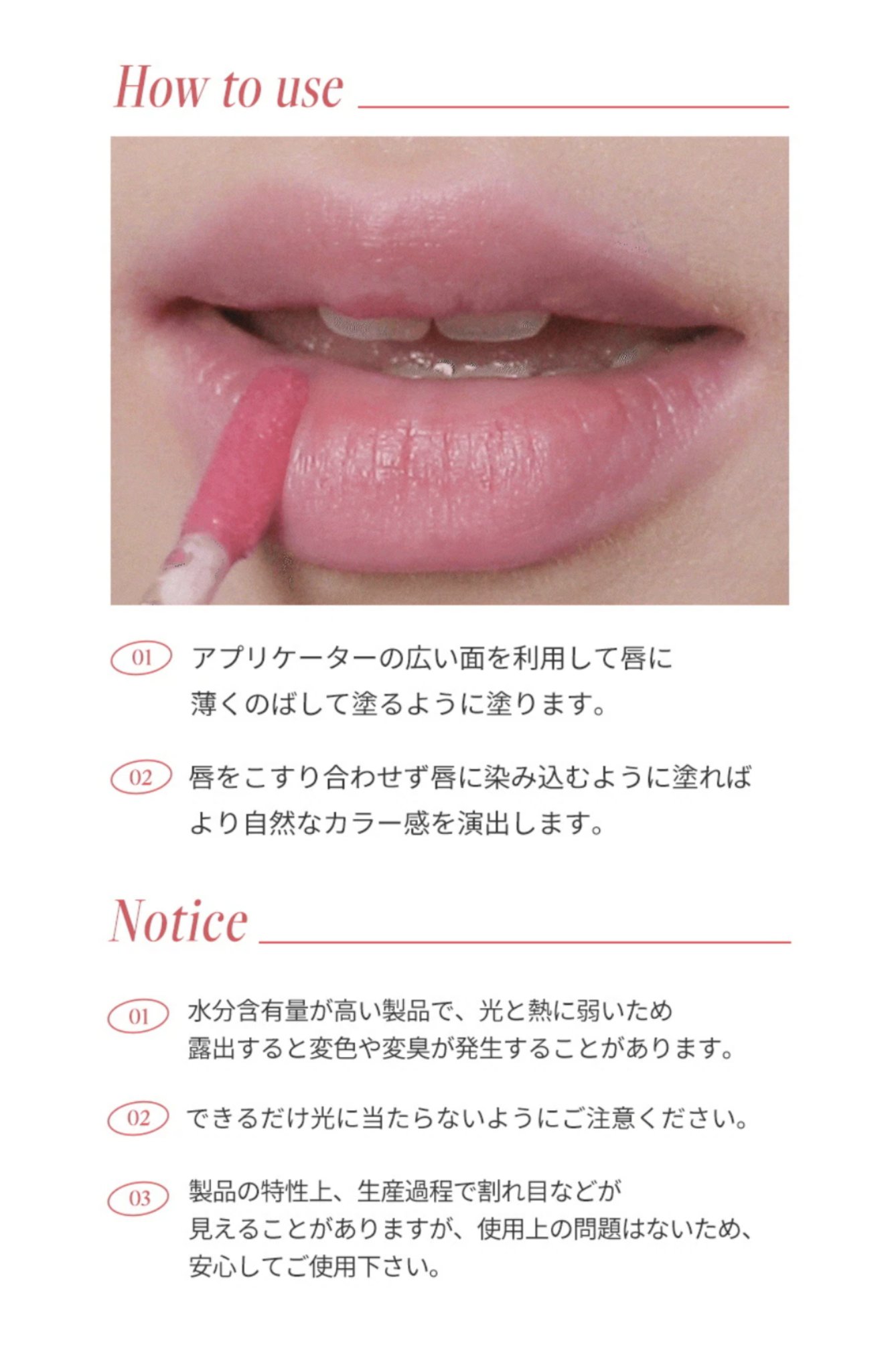 | 溢れるような艶感と色持ちの良さが魅力のもちぷるティント。 | 詳細を見る | |