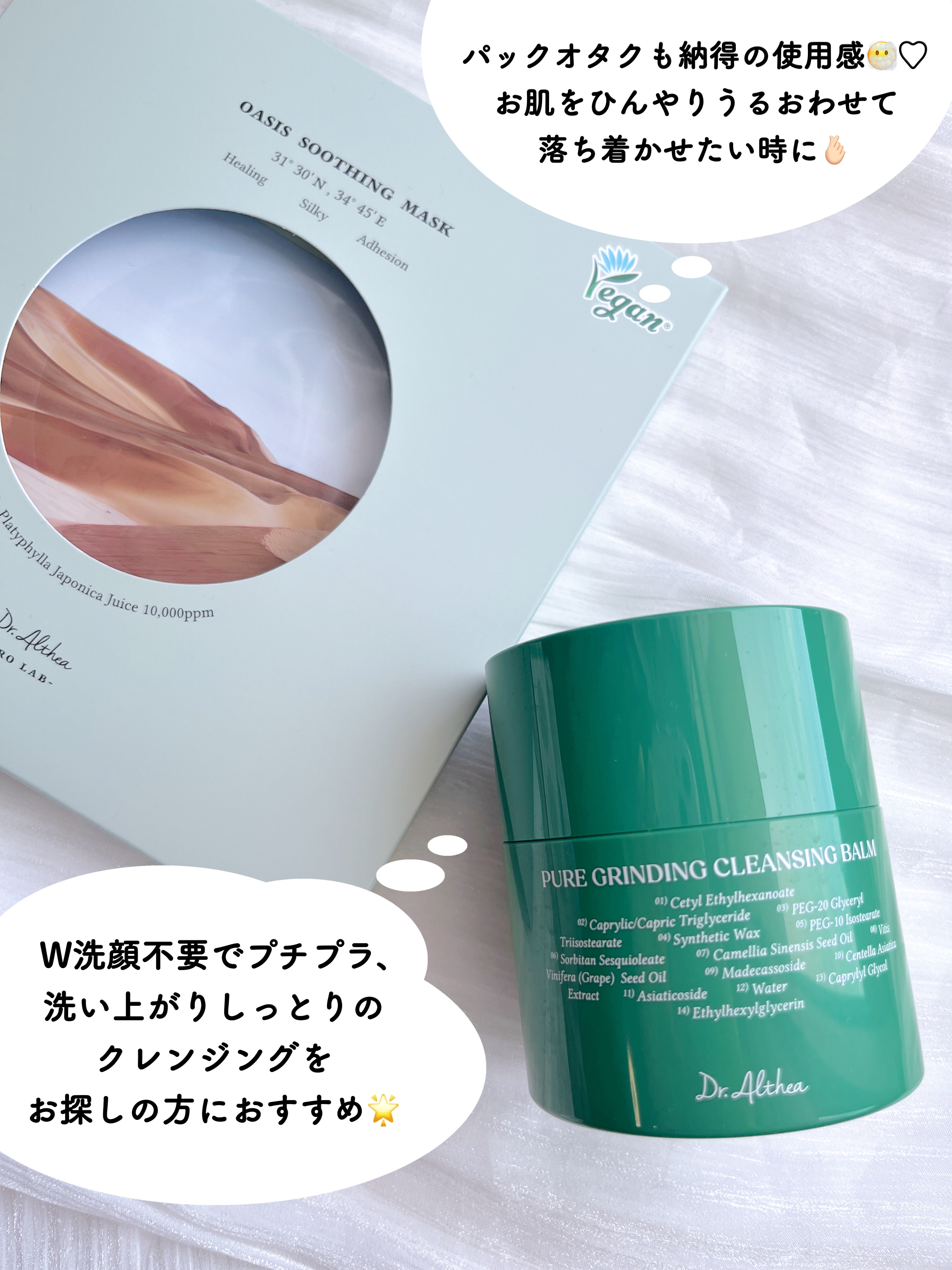 ドクターエルシアピュアグライディングクレンジングバーム&オアシススージングマスク✨品質を重視したワンランク上の大人の韓国コスメ、ドクターエルシア💡削って使うユニークなグラインダー式クレンジングバームと復活草アンプルを丸ごと1本含んだお肌の栄養...