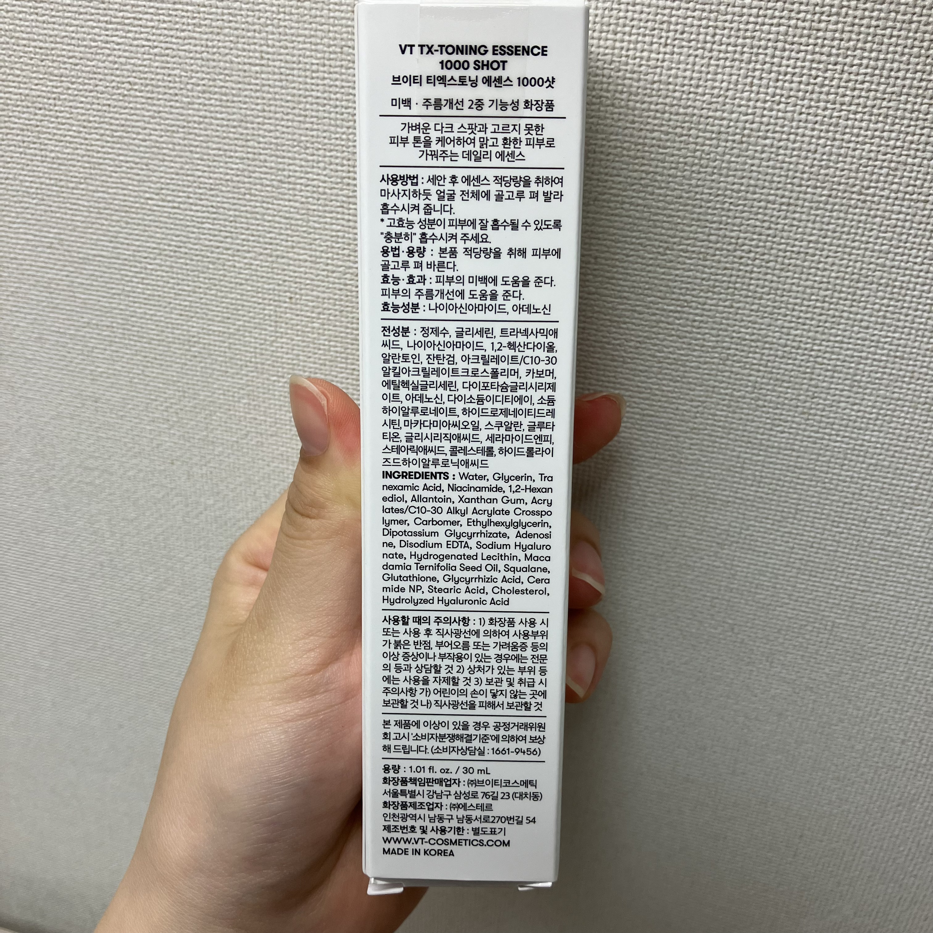 TX-トーニングエッセンスはくすみ・シミ・ニキビ跡へ集中的にアプローチ。私は毎日朝晩リールドショット100→TXトーニングエッセンスの順番で使用しました。 赤みが落ち着き、肌が明るく感じられます! 2本目突入します♡ 目立った効果は感じられないけどくすみは感じられなくなりました。