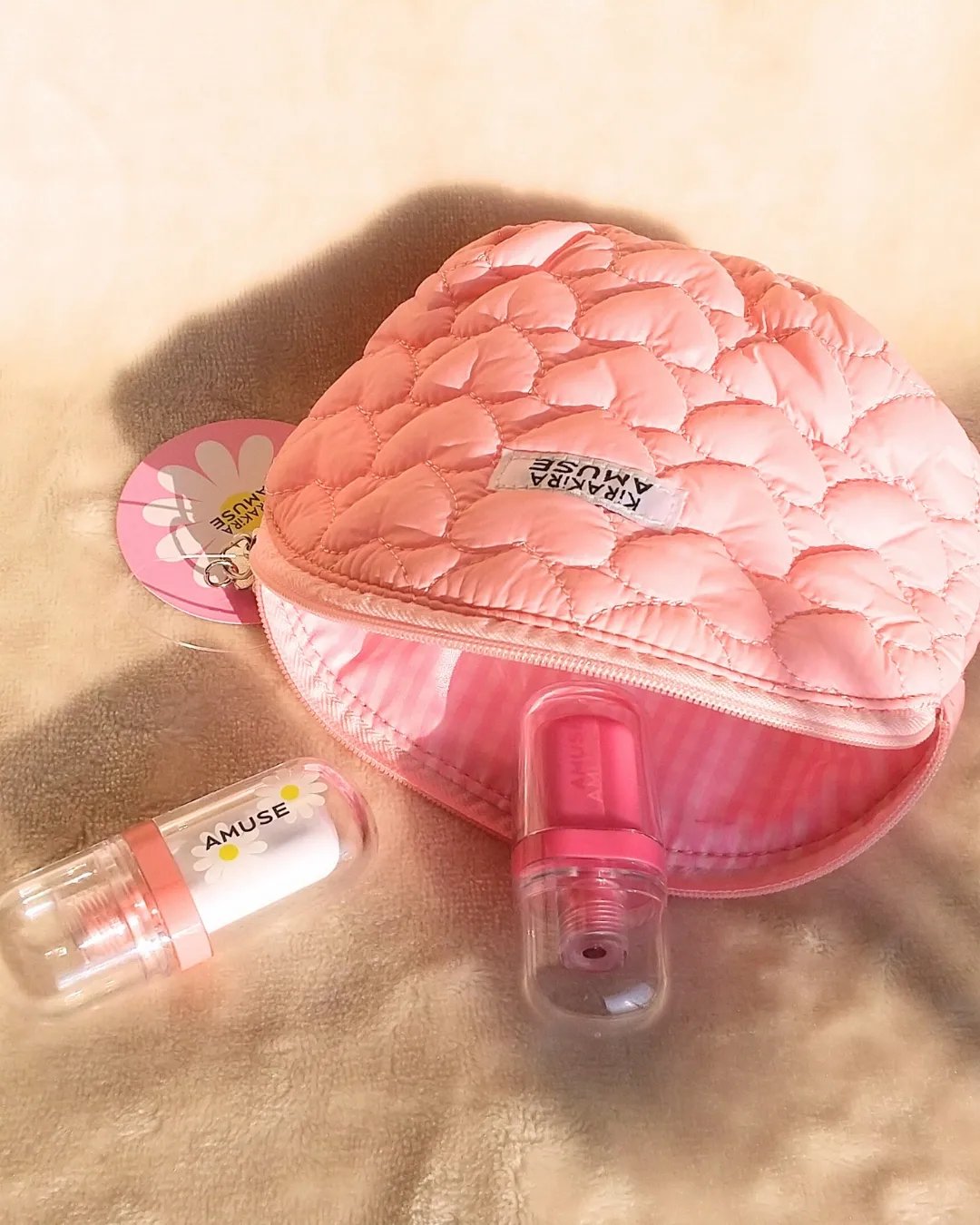 可愛い色ってテンション上がるねー! フルーティーないい香りもする。 ゆらぎ肌の毛穴ケアを叶えるパック&クレンザー。アロエ成分をたっぷり配合して、もちプチっとした痛さを感じにくいスクラブ入り! ハートパフは可愛いけど実用性どーなん?と疑いながら使ったら小鼻のキワにジャストフィットでしたわい👏