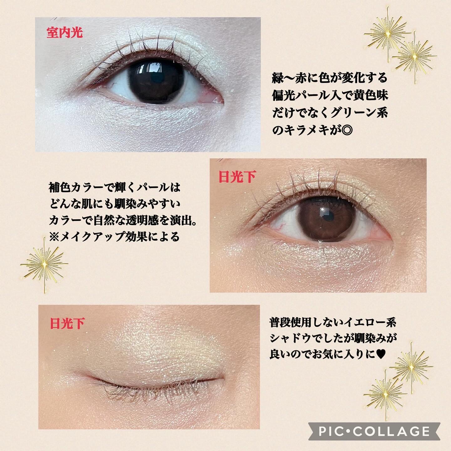 - 9つの質感に秘められた無限の可能性を持つカラーバリエーション。 【トゥインクル】 まるでヴェールのように、極小の光の粒がまぶたを包み込み、上品な華やかさをプラスしてくれるトゥインクル。 ポイント使いをすれば、自然で上品なツヤ感に。普段のメイクのニュアンスチェンジにも活躍します。