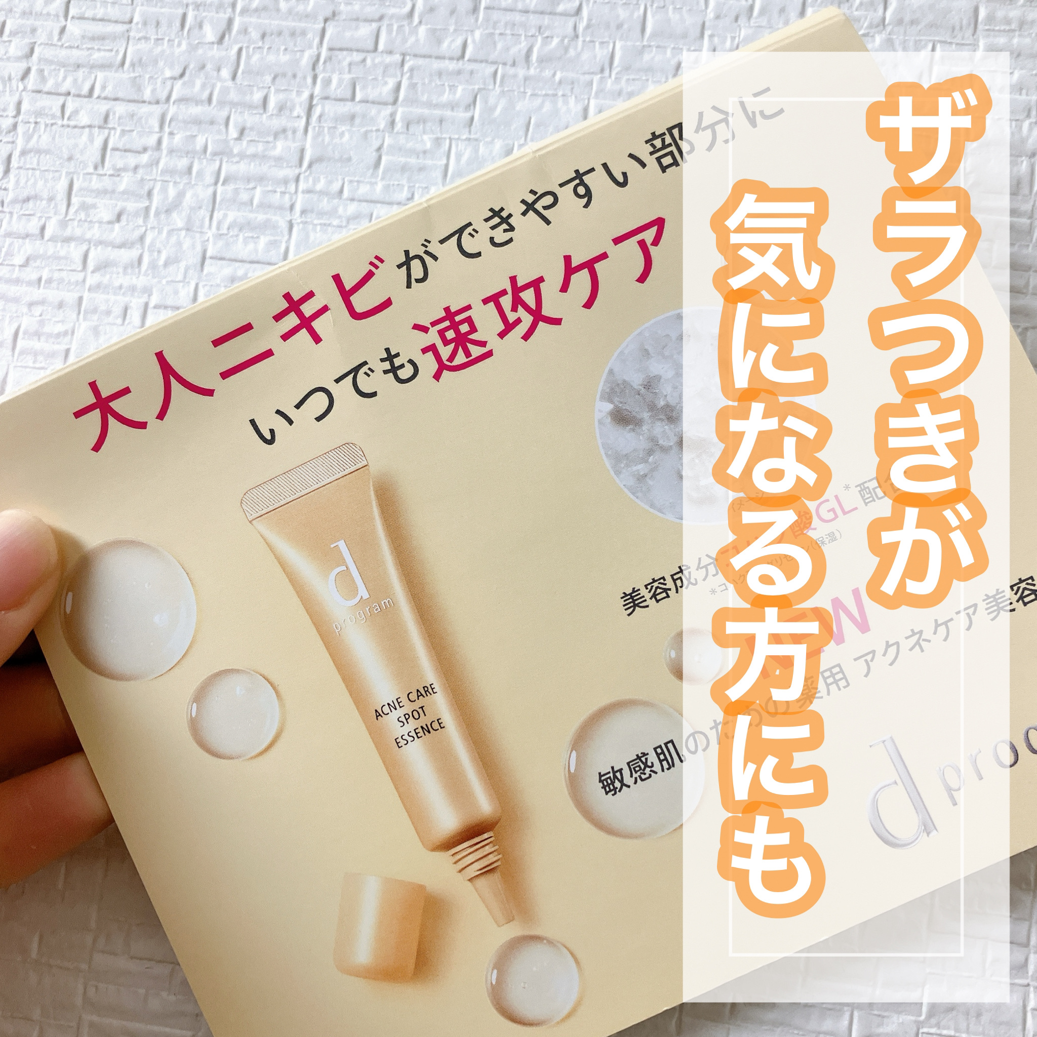 - 【医薬部外品】 誰の肌にも存在し、美しい肌の鍵である美肌菌に着目したdプログラム。 いつでも速攻ケア。 大人のニキビを防ぎ「なめらか美肌」に導く薬用アクネケア美容液。 美容成分コハク酸GL配合(コハク酸、グリセリン/保湿)。 肌荒れ・ニキビを防ぐ2種の薬用有効成分配合。 悪化しやすいニキビを未然に防ぐことで、ニキビ跡を防ぎます。 オイルフリー。 ●厳選成分配合、クリーン製法 ●パラベン(防腐剤)フリー、アルコール(エチルアルコール)フリー ●無香料、無着色、弱酸性 ●低刺激設計。 敏感肌の方のご協力によるパッチテスト済み* ●スティンギングテスト済み* *すべての方にアレルギーや皮ふ刺激がおきないわけではありません