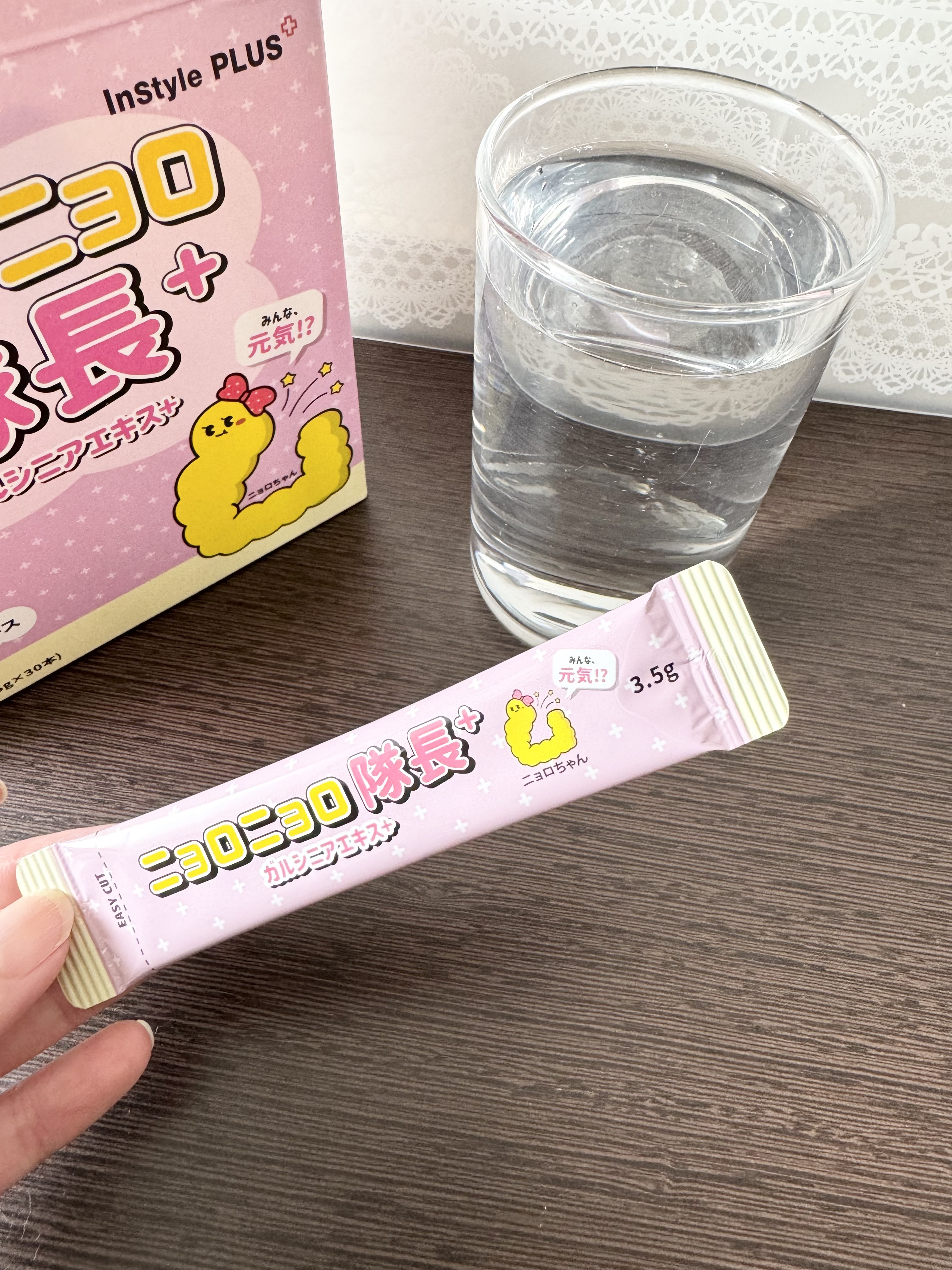 個包装タイプで一回分のつぶつぶが入ってるよ! たっぷりの水で飲むのがいいそう。 試しに水につけてみたら、水分を含んでたっぷり膨らんで柔らかくなったよ💞 小粒で飲みやすいし、味や香りも気にならなかった◎ 個包装のパッケージは可愛いから持ち歩きにも良さそう!