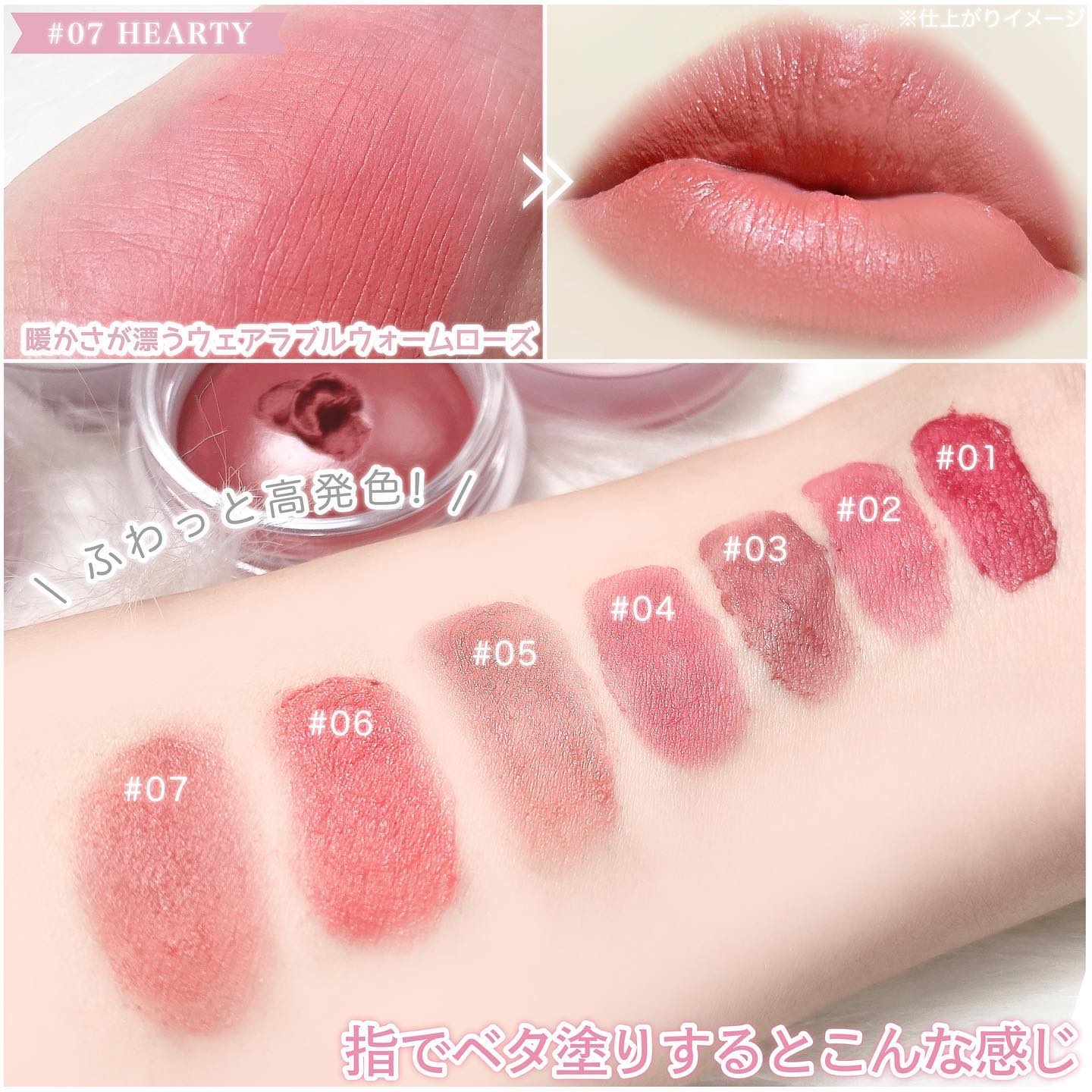 - <02 PEAK(ピーク)> ジメチコン、ジメチコンクロスポリマー、シリカ、イソノナン酸イソノニル、パラフィン、合成フルオロフロゴパイト、リンゴ酸ジイソステアリル、酸化チタン、リンゴ種子油、トリイソステアリン酸ポリグリセリル-2、ツバキ種子油、セチルPEG/PPG-10/1ジメチコン、イソステアリン酸ソルビタン、(セバシン酸/イソパルミチン酸)ジグリセリル、(ビニルジメチコン/メチコンシルセスキオキサン)クロスポリマー、ポリヒドロキシステアリン酸、マイクロクリスタリンワックス、ジステアルジモニウムヘクトライト、レシチン、ジイソステアリン酸ポリグリセリル-2、パルミチン酸エチルヘキシル、ミリスチン酸イソプロピル、イソステアリン酸、ポリリシノレイン酸ポリグリセリル-3、クエン酸トリエチル、(ラズベリー種子油/コハク酸トコフェロール)アミノプロパンジオールエステルズ、トコフェロール、ブドウ種子油、BG、水、グリセリン、シロバナワタ種子エキス、香料、酸化鉄、赤202、黄4、赤227、赤201 <03 MUVE(ミューブ)> ジメチコン、ジメチコンクロスポリマー、シリカ、パラフィン、合成フルオロフロゴパイト、リンゴ酸ジイソステアリル、酸化チタン、イソノナン酸イソノニル、リンゴ種子油、トリイソステアリン酸ポリグリセリル-2、ツバキ種子油、セチルPEG/PPG-10/1ジメチコン、イソステアリン酸ソルビタン、(セバシン酸/イソパルミチン酸)ジグリセリル、(ビニルジメチコン/メチコンシルセスキオキサン)クロスポリマー、ポリヒドロキシステアリン酸、マイクロクリスタリンワックス、ジステアルジモニウムヘクトライト、レシチン、ジイソステアリン酸ポリグリセリル-2、パルミチン酸エチルヘキシル、ミリスチン酸イソプロピル、イソステアリン酸、ポリリシノレイン酸ポリグリセリル-3、クエン酸トリエチル、(ラズベリー種子油/コハク酸トコフェロール)アミノプロパンジオールエステルズ、トコフェロール、ブドウ種子油、BG、水、グリセリン、シロバナワタ種子エキス、香料、酸化鉄、黄4、赤202、青1、赤201 <05 LESSENING(レスニング)> ジメチコン、ジメチコンクロスポリマー、シリカ、リンゴ酸ジイソステアリル、酸化チタン、パラフィン、合成フルオロフロゴパイト、リンゴ種子油、トリイソステアリン酸ポリグリセリル-2、イソノナン酸イソノニル、ツバキ種子油、セチルPEG/PPG-10/1ジメチコン、イソステアリン酸ソルビタン、(セバシン酸/イソパルミチン酸)ジグリセリル、(ビニルジメチコン/メチコンシルセスキオキサン)クロスポリマー、ポリヒドロキシステアリン酸、マイクロクリスタリンワックス、ジステアルジモニウムヘクトライト、レシチン、パルミチン酸エチルヘキシル、ミリスチン酸イソプロピル、イソステアリン酸、ポリリシノレイン酸ポリグリセリル-3、クエン酸トリエチル、ジイソステアリン酸ポリグリセリル-2、(ラズベリー種子油/コハク酸トコフェロール)アミノプロパンジオールエステルズ、トコフェロール、ブドウ種子油、BG、水、グリセリン、シロバナワタ種子エキス、香料、酸化鉄、赤227、黄4、赤202 <07 HEARTY(ハーティ)> ジメチコン、ジメチコンクロスポリマー、シリカ、パラフィン、イソノナン酸イソノニル、合成フルオロフロゴパイト、リンゴ酸ジイソステアリル、酸化チタン、リンゴ種子油、トリイソステアリン酸ポリグリセリル-2、ツバキ種子油、セチルPEG/PPG-10/1ジメチコン、イソステアリン酸ソルビタン、(セバシン酸/イソパルミチン酸)ジグリセリル、(ビニルジメチコン/メチコンシルセスキオキサン)クロスポリマー、ポリヒドロキシステアリン酸、マイクロクリスタリンワックス、ジステアルジモニウムヘクトライト、レシチン、ジイソステアリン酸ポリグリセリル-2、パルミチン酸エチルヘキシル、ミリスチン酸イソプロピル、イソステアリン酸、ポリリシノレイン酸ポリグリセリル-3、クエン酸トリエチル、(ラズベリー種子油/コハク酸トコフェロール)アミノプロパンジオールエステルズ、トコフェロール、ブドウ種子油、BG、水、グリセリン、シロバナワタ種子エキス、香料、黄5、酸化鉄、赤202、赤201、青1 <10 MELTY(メルティ)> ジメチコン、ジメチコンクロスポリマー、シリカ、リンゴ酸ジイソステアリル、酸化チタン、パラフィン、合成フルオロフロゴパイト、リンゴ種子油、トリイソステアリン酸ポリグリセリル-2、ツバキ種子油、セチルPEG/PPG-10/1ジメチコン、イソステアリン酸ソルビタン、(セバシン酸/イソパルミチン酸)ジグリセリル、イソノナン酸イソノニル、(ビニルジメチコン/メチコンシルセスキオキサン)クロスポリマー、ポリヒドロキシステアリン酸、マイクロクリスタリンワックス、ジステアルジモニウムヘクトライト、レシチン、パルミチン酸エチルヘキシル、ミリスチン酸イソプロピル、イソステアリン酸、ジイソステアリン酸ポリグリセリル-2、ポリリシノレイン酸ポリグリセリル-3、クエン酸トリエチル、(ラズベリー種子油/コハク酸トコフ