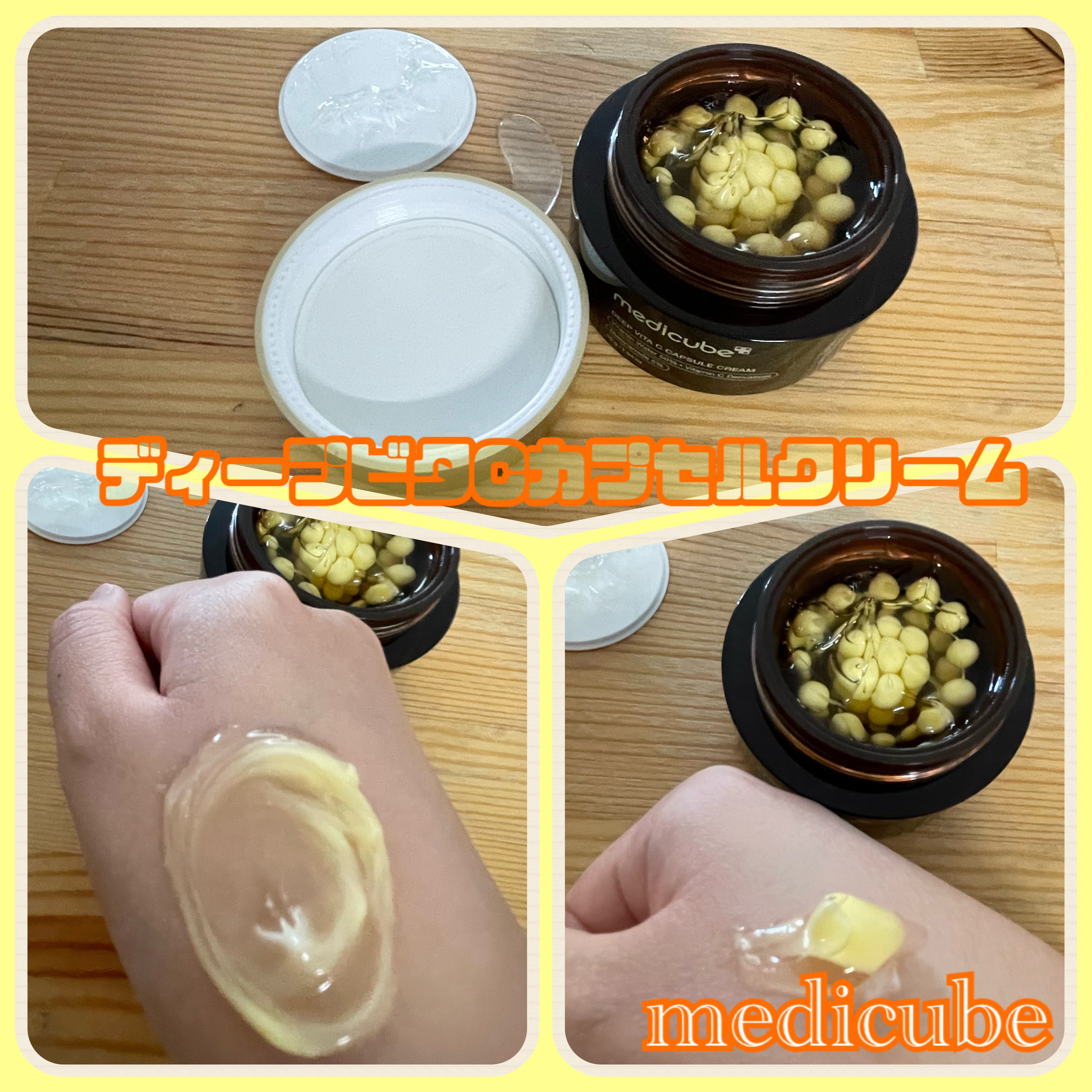 メディキューブのディープビタCカプセルクリームを買ってみたよ!顔にカプセルをたくさんのせている人を見て、私も試したくなって購入😍ビタミンC誘導体5種、ナイアシンアミド、ピュアビタミンC、ビタミンツリーウォーターが配合✨仕上がり透明🫥ジェルを多...