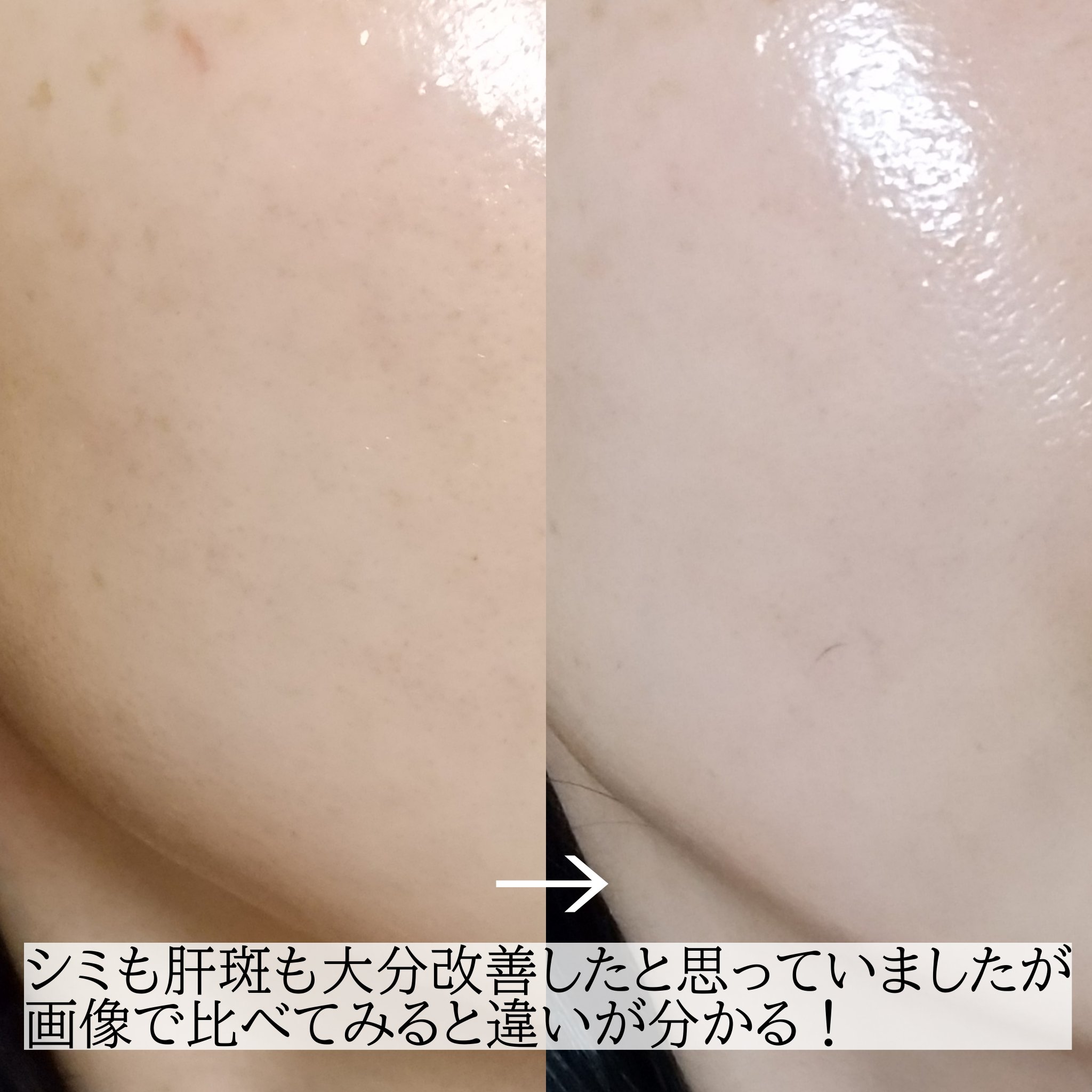 before画像はシミが1番濃い時ですがピンクベージュのトーンアップ日焼け止め、チークを塗っていたのに目立つ目立つ😭 afterは先日夜の洗顔後、スキンケアの後に撮ったものです。 シミはできてしまったはおうちでのケアでは無くなりはしないと思っていますが、 長期間ではありますが一時期より改善できて嬉しいです😊