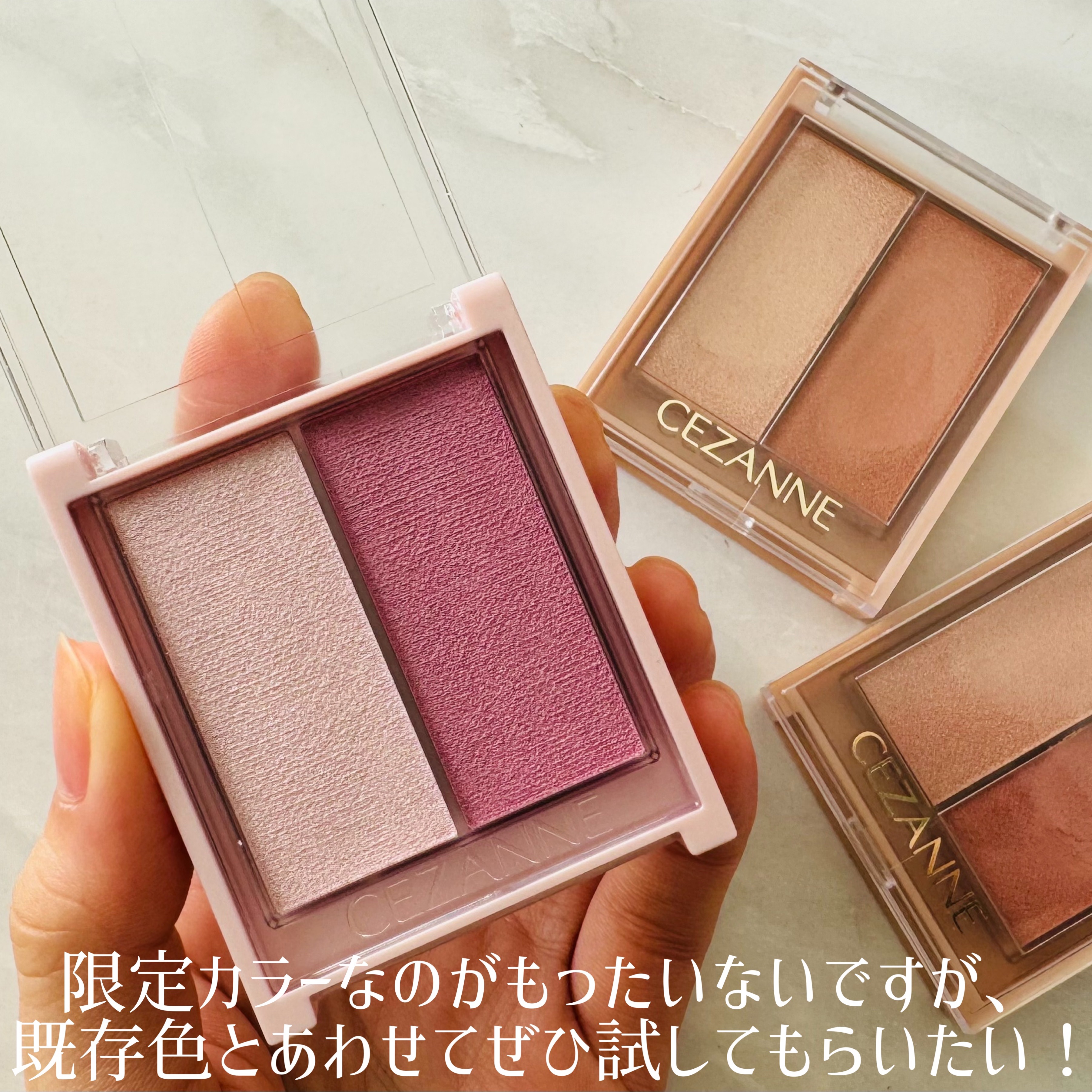 \話題のセザンヌの新作コスメをスウォッチ/【CEZANNEフェイスアイパレット】☑️各¥847☑️01ピュアコーラル柔らかいコーラルベージュのウォームトーンで、温かみのある優しい印象に。☑️02クラッシーピンク上品なくすみピンクのクールトーン...