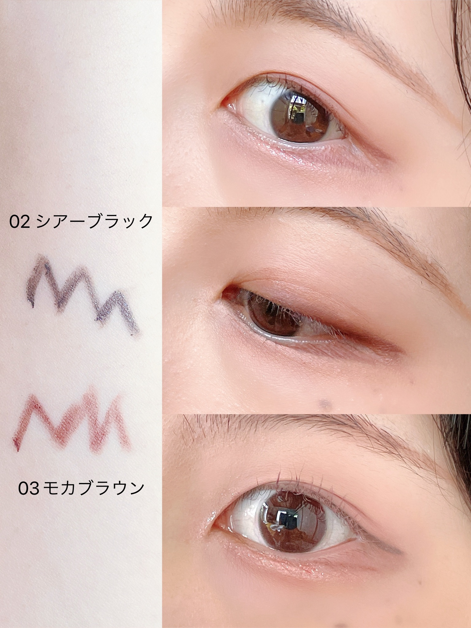 キャンメイクは、繰り戻しができないけど、セザンヌは繰り戻しができるので、調節がしやすい。 キャンメイクもセザンヌも芯の太さが3mmと一緒なのにも関わらず、パケの厚みによって、塗る時にキャンメイクの方が細く感じ塗りやすいです。 キャンメイクは現在3色発売しているので、自分の好みを選ぶことができる。 セザンヌは後でメイク直しが必要な時があります。セザンヌはお風呂に入るまで落ちなくて、メイク直しをする必要がなかったです! キャンメイクもセザンヌも3色発売しています。 比較すると、キャンメイクの方が薄く、セザンヌの方が色が濃い印象があります。 特に色落ちに関しては、使用する下地やファンデーションで変わる可能性があるので、あくまで参考程度に見てもらえたらと思います。