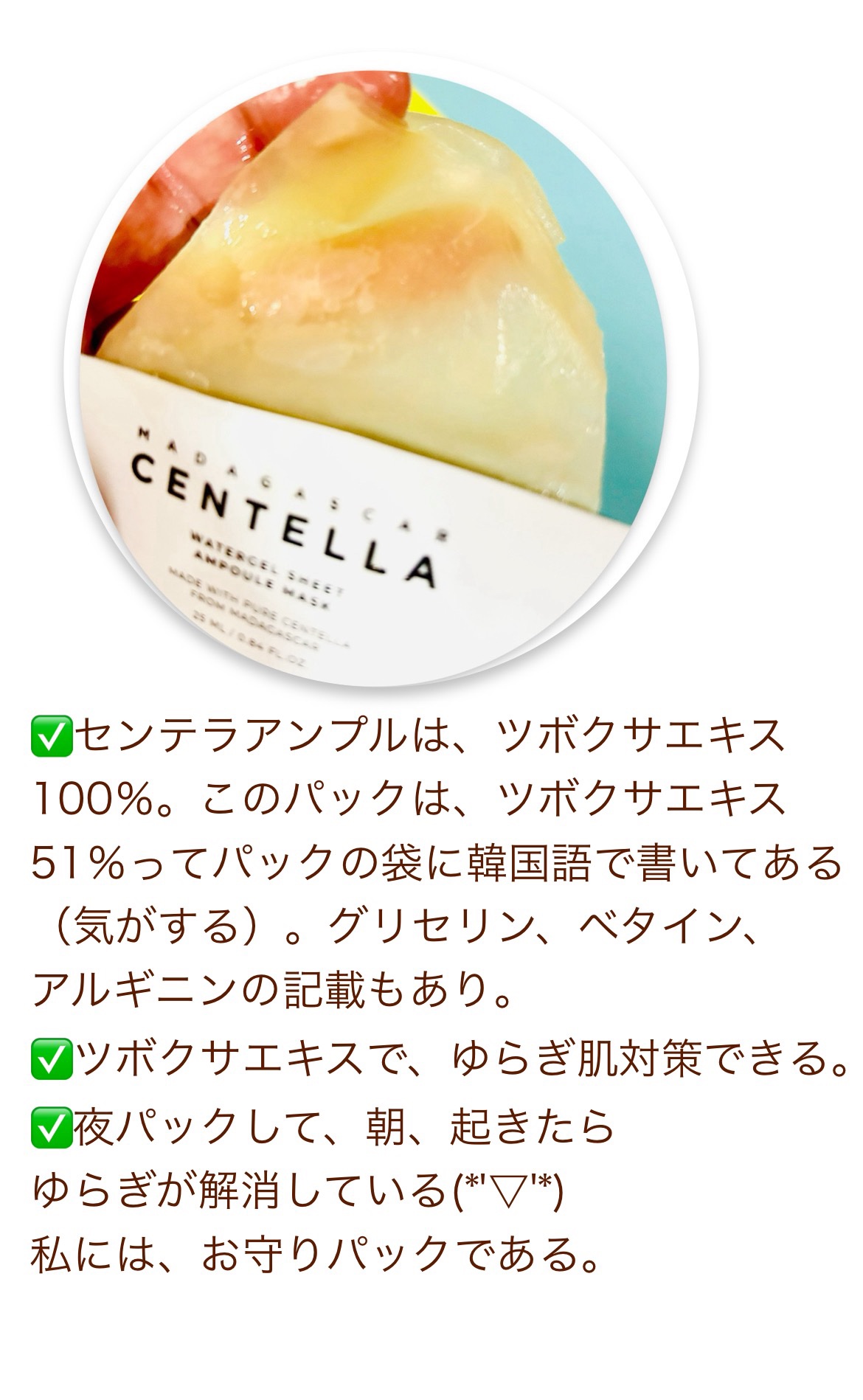 今日の保湿〜SKIN1004センテラウォーターゲルシートアンプルマスク〜コレSKIN1004の中で1番好きなシートマスクシートがトゥルトゥルーでひたひたの液で最高に肌安定するからこの季節マジで良い他のシートマスク買っちゃったからskin100...