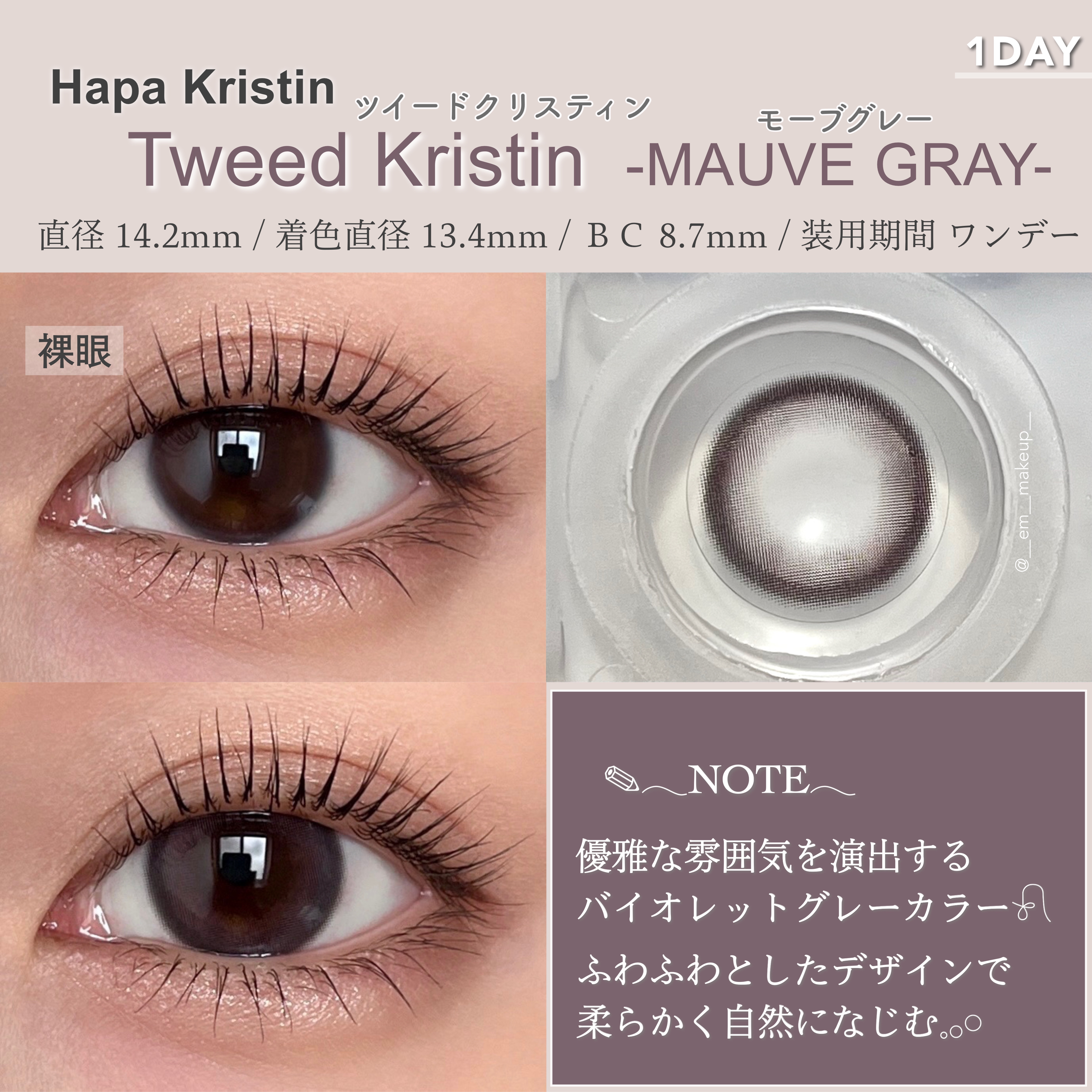 \メガ割購入品☺︎/♡HapaKristin TweedKristin1day MAUVEGRAY SugarHighKristinPlus1day GRAY最近、Hapakristinのカラコンにハマってるので、今回のメガ割で追加購入しまし...