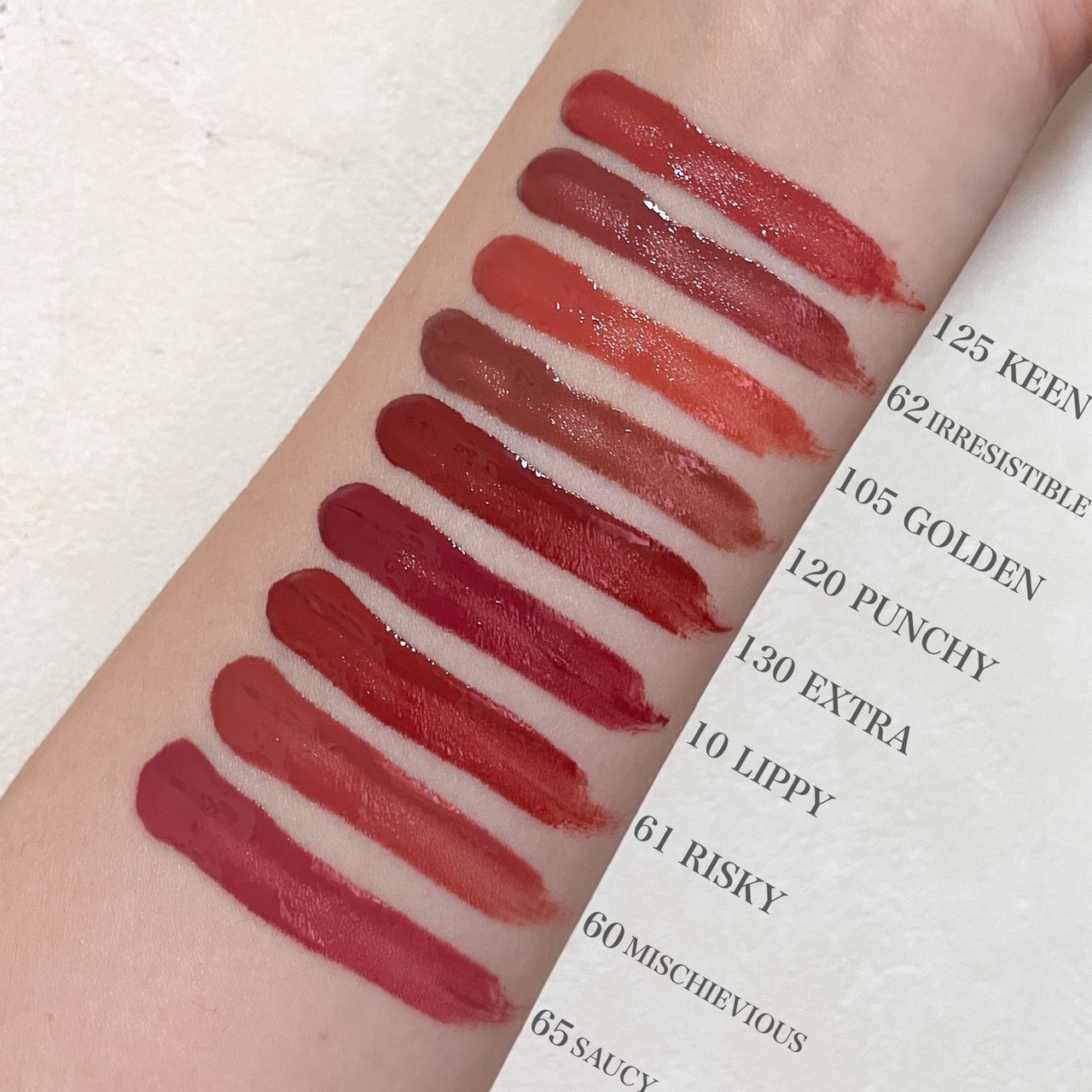 - <10 おしゃべりなヌードルージュ> イソドデカン、ジメチコン、トリメチルシロキシケイ酸、ポリメチルシルセスキオキサン/トリメチルシロキシケイ酸、ポリプロピルシルセスキオキサン、アルキル(C30-45)ジメチルシリルポリプロピルシルセスキオキサン、トリメチルシロキシフェニルジメチコン、トリメチルペンタフェニルトリシロキサン、ビスステアリルジメチコン、ジメチコノール、トリヒドロキシステアリン、フェノキシエタノール、香料、酢酸トコフェロール、エチルヘキシルグリセリン、トリエトキシカプリリルシラン、パルミチン酸イソプロピル、ミリスチン酸イソプロピル、シトロネロール、ゲラニオール、ベンジルアルコール、アロエベラ葉エキス、リナロール、トコフェロール、酸化チタン、酸化鉄、赤202、赤104(1)、アルミナ、黄5、シリカ <23 反抗的なワイルドレッド> イソドデカン、ジメチコン、トリメチルシロキシケイ酸、ポリメチルシルセスキオキサン/トリメチルシロキシケイ酸、ポリプロピルシルセスキオキサン、アルキル(C30-45)ジメチルシリルポリプロピルシルセスキオキサン、トリメチルシロキシフェニルジメチコン、酸化鉄、トリメチルペンタフェニルトリシロキサン、ビスステアリルジメチコン、ジメチコノール、赤202、トリヒドロキシステアリン、フェノキシエタノール、赤230(1)、香料、酢酸トコフェロール、エチルヘキシルグリセリン、トリエトキシカプリリルシラン、パルミチン酸イソプロピル、ミリスチン酸イソプロピル、シトロネロール、ゲラニオール、ベンジルアルコール、アロエベラ葉エキス、リナロール、トコフェロール <37 大胆なオレンジチリ> イソドデカン、ジメチコン、トリメチルシロキシケイ酸、ポリメチルシルセスキオキサン/トリメチルシロキシケイ酸、ポリプロピルシルセスキオキサン、アルキル(C30-45)ジメチルシリルポリプロピルシルセスキオキサン、トリメチルシロキシフェニルジメチコン、トリメチルペンタフェニルトリシロキサン、ビスステアリルジメチコン、ジメチコノール、トリヒドロキシステアリン、フェノキシエタノール、香料、酢酸トコフェロール、エチルヘキシルグリセリン、トリエトキシカプリリルシラン、パルミチン酸イソプロピル、ミリスチン酸イソプロピル、シトロネロール、ゲラニオール、ベンジルアルコール、アロエベラ葉エキス、リナロール、トコフェロール、酸化チタン、酸化鉄、赤202、赤104(1)、アルミナ、黄5、シリカ <53 気まぐれなバーガンディピンク> イソドデカン、ジメチコン、トリメチルシロキシケイ酸、ポリメチルシルセスキオキサン/トリメチルシロキシケイ酸、ポリプロピルシルセスキオキサン、アルキル(C30-45)ジメチルシリルポリプロピルシルセスキオキサン、トリメチルシロキシフェニルジメチコン、トリメチルペンタフェニルトリシロキサン、ビスステアリルジメチコン、ジメチコノール、トリヒドロキシステアリン、フェノキシエタノール、香料、酢酸トコフェロール、エチルヘキシルグリセリン、トリエトキシカプリリルシラン、パルミチン酸イソプロピル、ミリスチン酸イソプロピル、シトロネロール、ゲラニオール、ベンジルアルコール、アロエベラ葉エキス、リナロール、トコフェロール、酸化チタン、酸化鉄、赤202、赤104(1)、アルミナ、黄5、シリカ <60 お茶目なヌードローズベージュ> イソドデカン、ジメチコン、トリメチルシロキシケイ酸、ポリメチルシルセスキオキサン/トリメチルシロキシケイ酸、ポリプロピルシルセスキオキサン、アルキル(C30-45)ジメチルシリルポリプロピルシルセスキオキサン、トリメチルシロキシフェニルジメチコン、トリメチルペンタフェニルトリシロキサン、ビスステアリルジメチコン、ジメチコノール、トリヒドロキシステアリン、フェノキシエタノール、香料、酢酸トコフェロール、エチルヘキシルグリセリン、トリエトキシカプリリルシラン、パルミチン酸イソプロピル、ミリスチン酸イソプロピル、シトロネロール、ゲラニオール、ベンジルアルコール、アロエベラ葉エキス、リナロール、トコフェロール、酸化チタン、酸化鉄、赤202、赤104(1)、アルミナ、黄5、シリカ <61 危険なマホガニーブラウン> イソドデカン、ジメチコン、トリメチルシロキシケイ酸、ポリメチルシルセスキオキサン/トリメチルシロキシケイ酸、ポリプロピルシルセスキオキサン、アルキル(C30-45)ジメチルシリルポリプロピルシルセスキオキサン、トリメチルシロキシフェニルジメチコン、トリメチルペンタフェニルトリシロキサン、ビスステアリルジメチコン、ジメチコノール、トリヒドロキシステアリン、フェノキシエタノール、香料、酢酸トコフェロール、エチルヘキシルグリセリン、トリエトキシカプリリルシラン、パルミチン酸イソプロピル、ミリスチン酸イソプロピル、シトロネロール、ゲラニオール、ベンジルアルコール、アロエベラ葉エキス、リナロール、トコフェロール