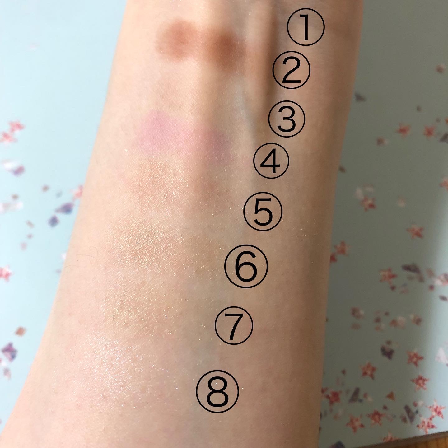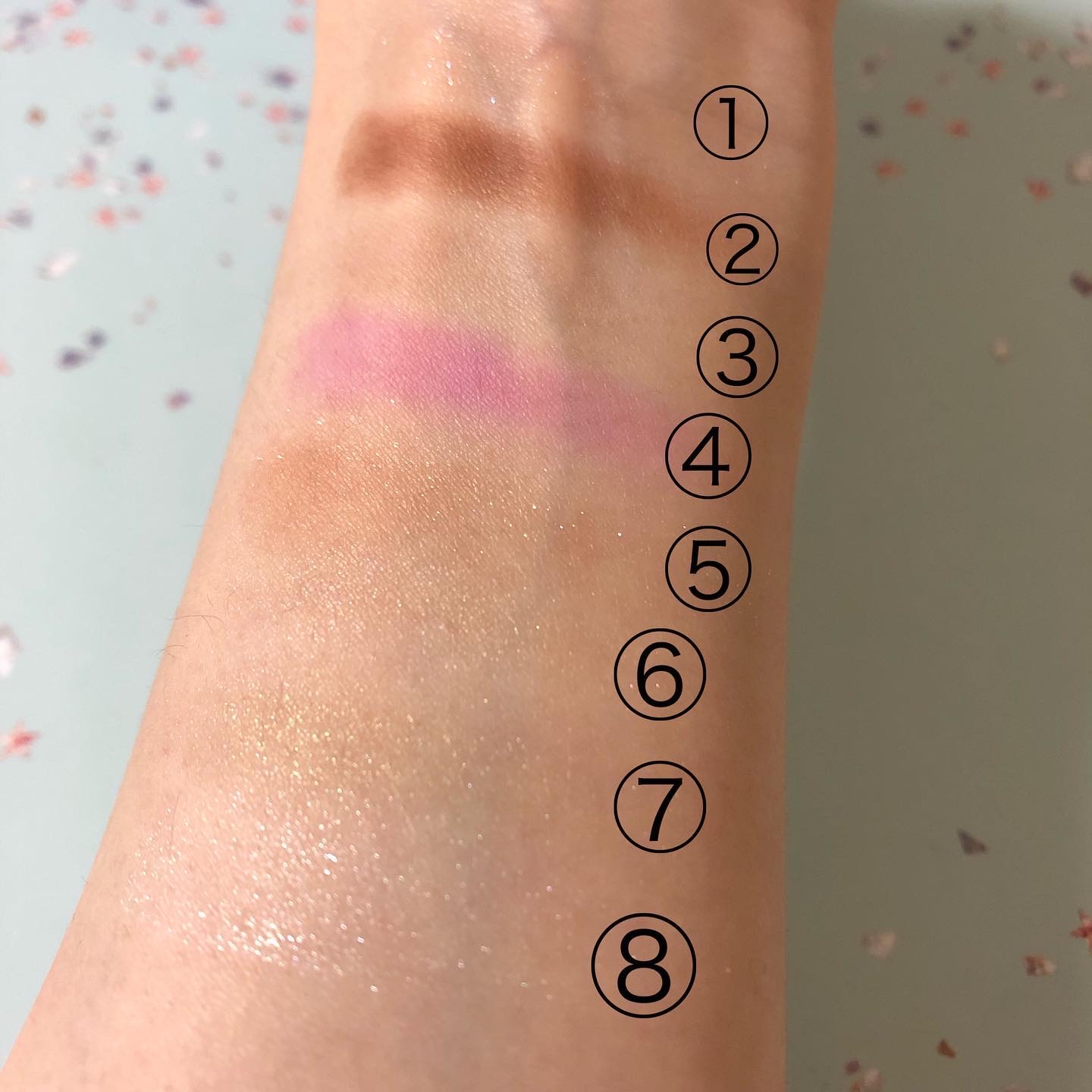 グリッター、ラメ、マットなど様々な質感を集めた華やかな9色パレット✨ 下の3段だけはハッキリと色が出ます! うーん🤔もう少し濃かったら凄く使えたかな?と ラメ、グリッター、パールのカラーは凄く良かったです✨
