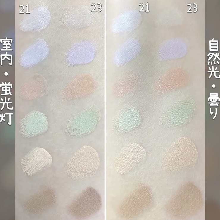 - <21号> 1. Pure : トリ(カプリル酸/カプリン酸)グリセリル, エチルヘキサン酸セチル, ジメチコン, リンゴ酸ジイソステアリル, ラウリン酸ヘキシル, ポリイソブテン, マイカ, マイクロクリスタリンワックス, ダイマージリノール酸(フィトステリル/イソステアリル/セチル/ステアリル/ベヘニル), 酸化チタン, テトラ(ヒドロキシステアリン酸/イソステアリン酸)ジペンタエリスリチル, シリカ, リンゴ種子油, 合成ワックス, ポリエチレン, イソステアリン酸ソルビタン, 合成フルオロフロゴパイト, ツバキ油, 水添ヤシ油, カミメボウキ葉エキス, (ビニルジメチコン/メチコンシルセスキオキサン)クロスポリマー, ポリヒドロキシステアリン酸, パルミチン酸エチルヘキシル, ミリスチン酸イソプロピル, イソステアリン酸, レシチン, ステアラルコニウムヘクトライト, ポリリシノレイン酸ポリグリセリル-3, 炭酸プロピレン, トリイソステアリン酸ポリグリセリル-2, カプリリルグリコール, カプリル酸グリセリル, トリエトキシカプリリルシラン, 精製水, BG, 酸化スズ, 酸化鉄 2. Lavendar : 酸化チタン, トリ(カプリル酸/カプリン酸)グリセリル, エチルヘキサン酸セチル, ジメチコン, ラウリン酸ヘキシル, マイクロクリスタリンワックス, ポリイソブテン, シリカ, リンゴ酸ジイソステアリル, ダイマージリノール酸(フィトステリル/イソステアリル/セチル/ステアリル/ベヘニル), テトラ(ヒドロキシステアリン酸/イソステアリン酸)ジペンタエリスリチル, リンゴ種子油, 合成ワックス, マイカ, ポリエチレン, イソステアリン酸ソルビタン, リンゴ種子油, 合成ワックス, マイカ, ポリエチレン, イソステアリン酸ソルビタン, グンジョウ, ツバキ油, 水添ヤシ油, カミメボウキ葉エキス, ポリヒドロキシステアリン酸, パルミチン酸エチルヘキシル, ミリスチン酸イソプロピル, イソステアリン酸, レシチン, ステアラルコニウムヘクトライト, ポリリシノレイン酸ポリグリセリル-3, 炭酸プロピレン, カプリリルグリコール, カプリル酸グリセリル, トリエトキシカプリリルシラン, 精製水, BG, 酸化鉄 3, Peach : 酸化チタン, トリ(カプリル酸/カプリン酸)グリセリル, エチルヘキサン酸セチル, ジメチコン, ラウリン酸ヘキシル, マイクロクリスタリンワックス, ポリイソブテン, マイカ, リンゴ酸ジイソステアリル, ダイマージリノール酸(フィトステリル/イソステアリル/セチル/ステアリル/ベヘニル), ㅠㅠテトラ(ヒドロキシステアリン酸/イソステアリン酸)ジペンタエリスリチル, リンゴ種子油, 合成ワックス, マイカ, ポリエチレン, イソステアリン酸ソルビタン, シリカ, リンゴ種子油, 合成ワックス, ポリエチレン, イソステアリン酸ソルビタン, ツバキ油, 水添ヤシ油, カミメボウキ葉エキス, ポリヒドロキシステアリン酸, パルミチン酸エチルヘキシル, ミリスチン酸イソプロピル, イソステアリン酸, レシチン, ステアラルコニウムヘクトライト, ポリリシノレイン酸ポリグリセリル-3, トリエトキシカプリリルシラン, 炭酸プロピレン, カプリリルグリコール, カプリル酸グリセリル, 精製水, BG, 酸化鉄 4. Mint : 酸化チタン, トリ(カプリル酸/カプリン酸)グリセリル, シリカ, エチルヘキサン酸セチル, ポリイソブテン, テトラ(ヒドロキシステアリン酸/イソステアリン酸)ジペンタエリスリチル, マイクロクリスタリンワックス, マイカ, ジメチコン, リンゴ酸ジイソステアリル, リンゴ種子油, 合成ワックス, 酸化鉄, セレシン, ポリヒドロキシステアリン酸, ツバキ油, 水添ヤシ油, カミメボウキ葉エキス, イソステアリン酸ソルビタン, 炭酸Ca, パルミチン酸エチルヘキシル, ミリスチン酸イソプロピル, イソステアリン酸, レシチン, リン酸2Ca, ポリリシノレイン酸ポリグリセリル-3, トリエトキシカプリリルシラン, ステアラルコニウムヘクトライト, カプリリルグリコール, カプリル酸グリセリル, 炭酸プロピレン, 精製水, BG, 酸化クロム, 酸化鉄 5. Ivory : 酸化チタン, トリ(カプリル酸/カプリン酸)グリセリル, シリカ, エチルヘキサン酸セチル, ポリイソブテン, テトラ(ヒドロキシステアリン酸/イソステアリン酸)ジペンタエリスリチル, マイカ, マイクロクリスタリンワックス, ジメチコン, リンゴ酸ジイソステアリル, リンゴ種子油, 合成ワックス, 酸化鉄, セレシン, ポリヒドロキシステアリン酸, ツバキ油, 水添ヤシ油, カミメボウキ葉エキス, イソステアリン酸ソルビタン, 炭酸Ca, パルミチン酸エチルヘキシル, ミリスチン酸イソプロピル, イソステアリン酸, レシチン, リン酸2Ca, ポリリシノレイン酸ポリグリセリル-3, トリエトキシカプリリルシラン, ステアラルコニウムヘクトライト, カプリリルグリコール, カプリル酸グリセリル, 炭酸プロピレン, 精製水, BG, 酸化鉄 6. silhouette : 酸化チタン, ラウリン酸ヘキシル, エチルヘキサン酸セチル, シリカ, トリ(カプリル酸/カプリン酸)グリセリル, ジメチコン, マイクロクリスタリンワックス, マイカ, ダイマージリノール酸(フィトステリル/イソステアリル/セチル/