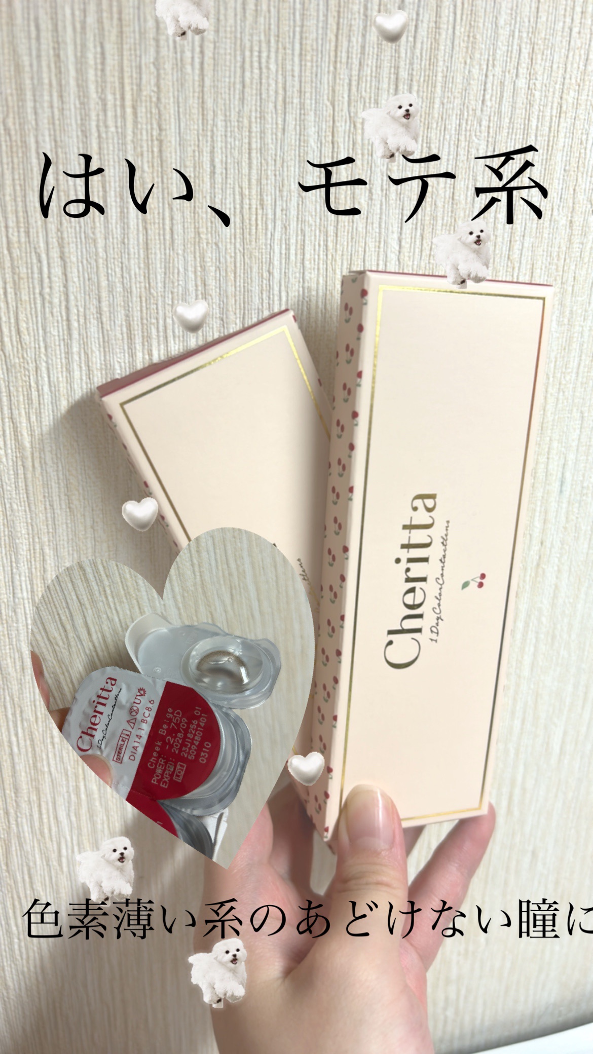 - “仕込む”ナチュラルメイク。 もっと自然に可愛くなりたい、そんなすべての女性へ。 Cheritta(チェリッタ)は、「イメチェンしたいけど変わりすぎるのは苦手」「ちょっとだけあか抜けたい」という全ての女性へ向け、メイクの過程にチェリッタを加えるだけで、いつもより自然に可愛くなれるナチュラルなデザインのカラーコンタクトレンズブランドです。 カラーコンタクトレンズの不適正使用による眼障害の危険性等などがあります。 ●コンタクトレンズは高度管理医療機器です。不十分な洗浄・消毒など不適切なケアや、長時間・交換期間を超えた装用により、アレルギー性結膜炎、角膜感染症、角膜潰瘍等の重篤な眼障害が発生する危険性があります ●ご使用前に取扱説明書を確認してください 使用上の留意事項 ●眼科医院等を受診してからお求めください ●眼に異常を感じたら直ちにレンズ使用を中止し、お近くの眼科等で診察を受けてください ●医師の指示にしたがってご使用ください ●コンタクトレンズを装用する場合、自覚症状がなくても、眼科医院等での定期検査を受けてください ●レンズに不具合がある場合は使用しないでください