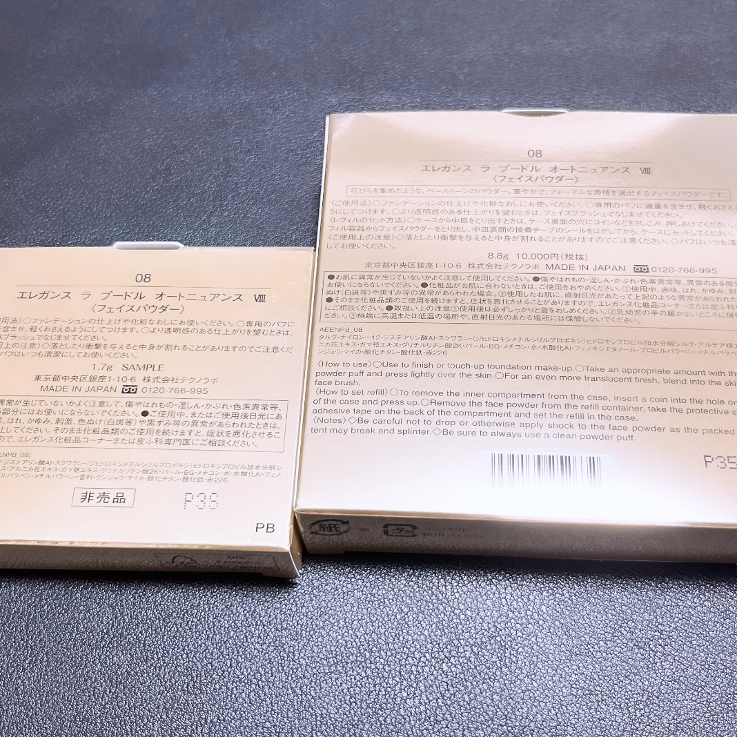 EléganceラプードルオートニュアンスVIIIイノセント ¥11,000値上がり前に駆け込みで購入💨I(エレガント)と迷って、一番新色のVIII(イノセント)にしたよ✨セミマットタイプ☝️大きい方は薄付きでふわっと仕上がる感じで、こっちの...