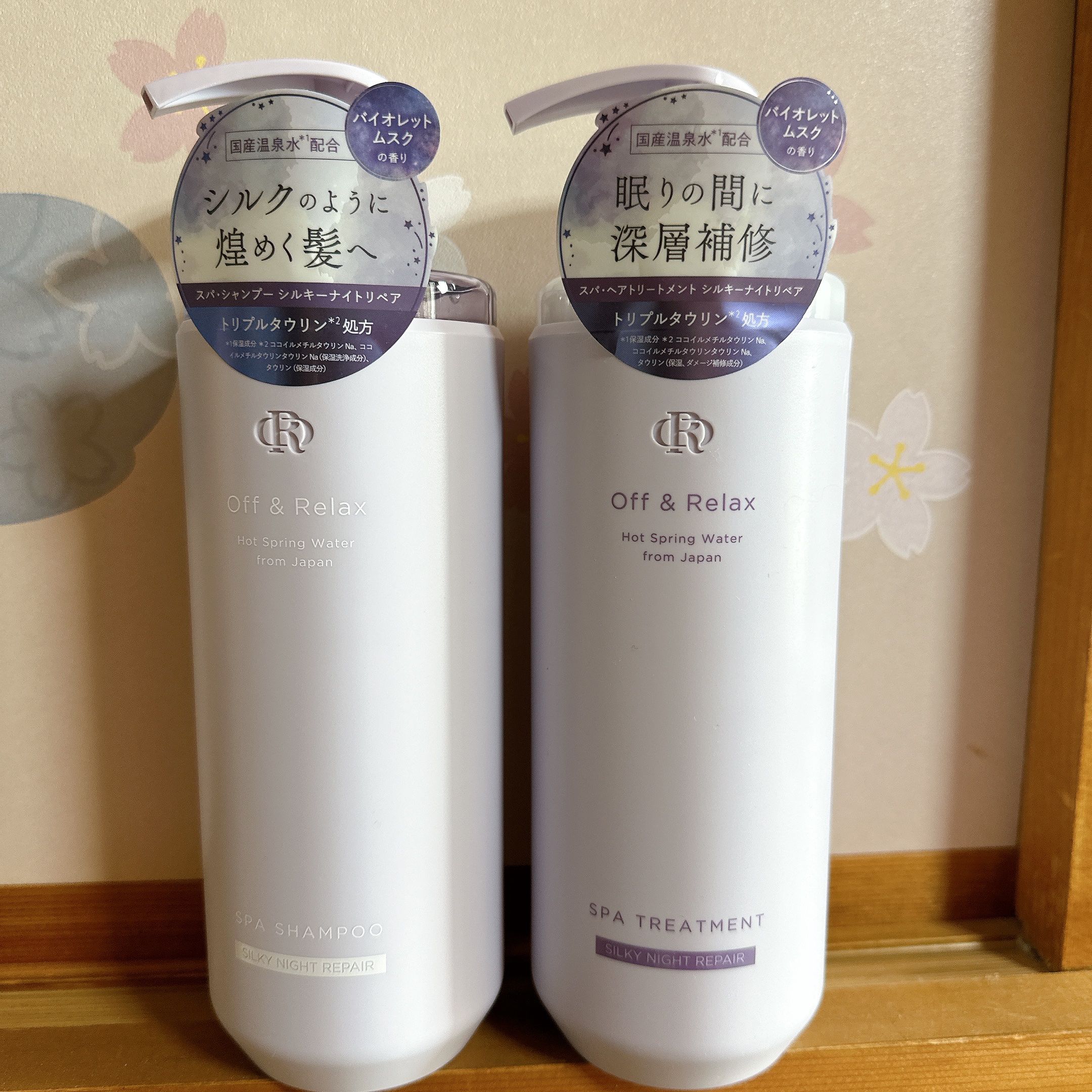 Off&Relax様からご提供いただきました!❄︎••••❄︎••••❄︎Off&RelaxORスパ・シャンプーシルキーナイトリペア460ml¥1,760(参考価格)ORスパ・ヘアトリートメントシルキーナイトリペア460ml¥1,760(参考...