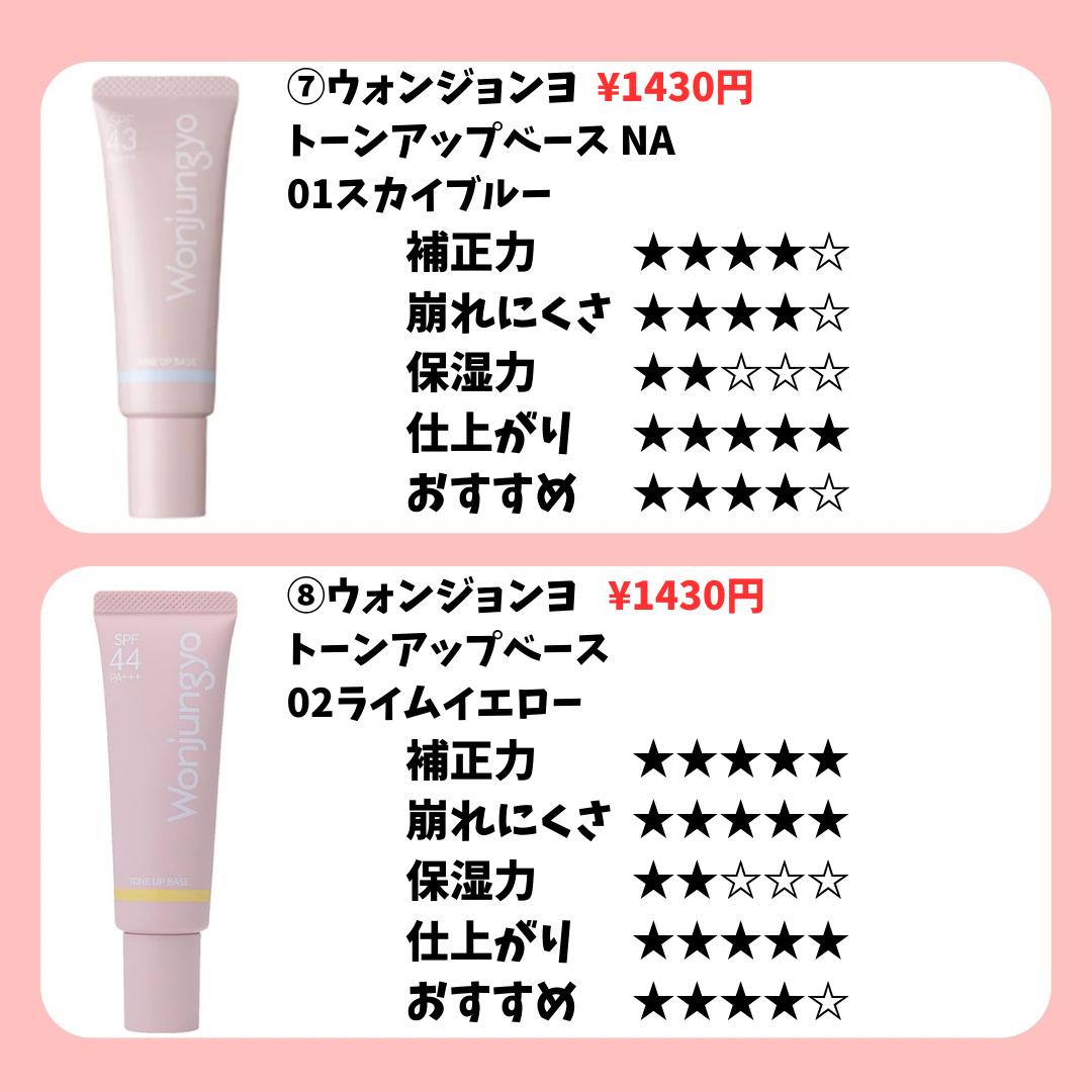 Wonjungyo ウォンジョンヨ トーンアップベース | 1,430円 |