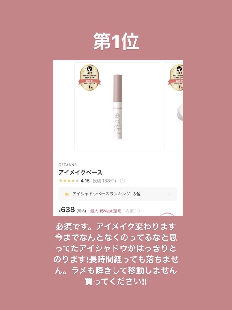| アイシャドウベースランキング第2位 | このプライマーはだいぶテクスチャがなめらかなのでかなり塗りやすかったです | 詳細を見る | |