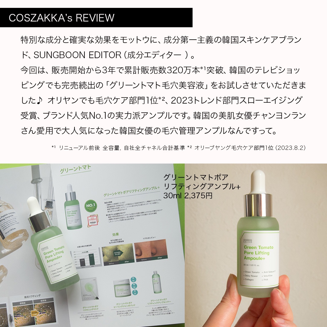 SUNGBOON EDITOR(成分エディター) グリーントマトポアリフティングアンプル+ | 3,700円 |