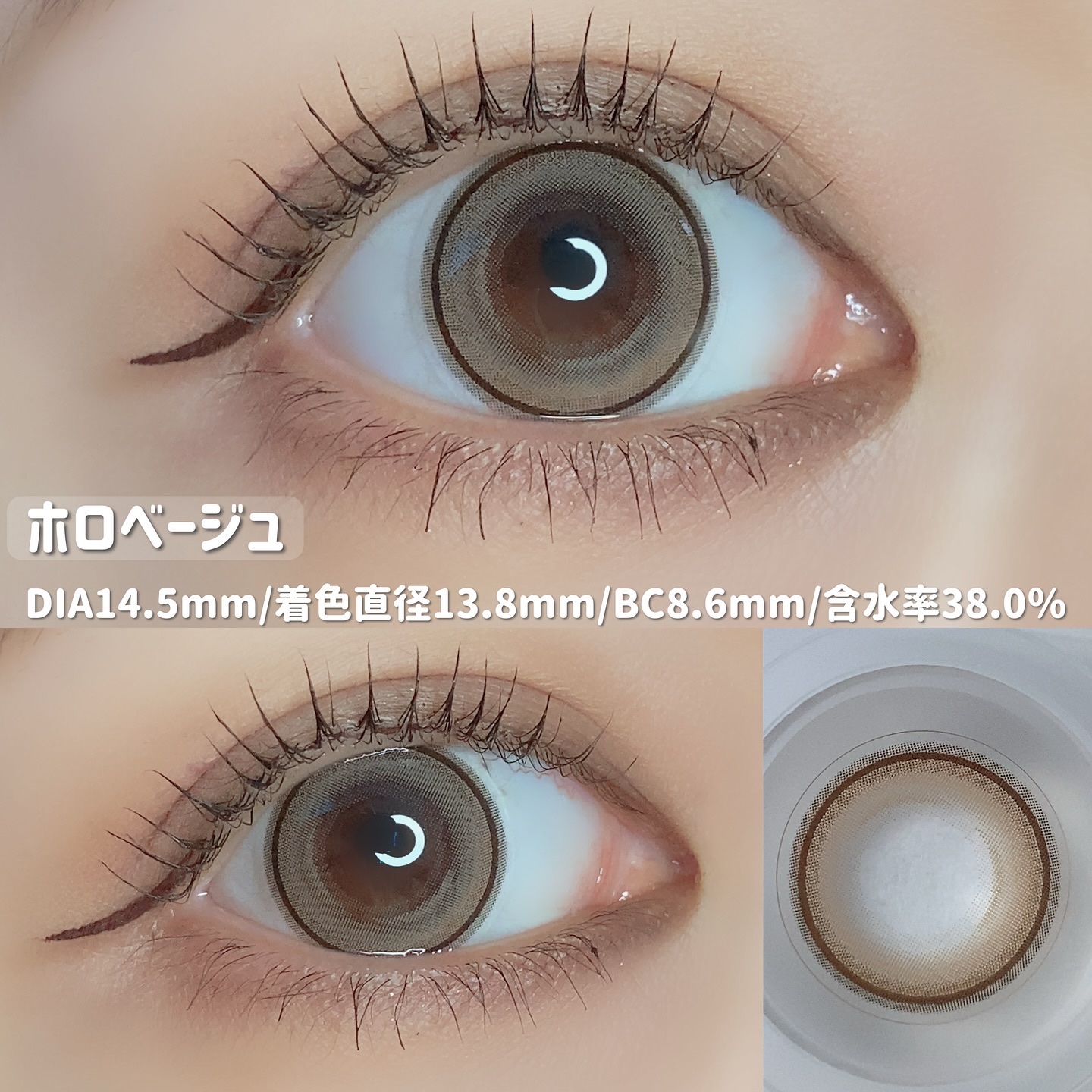 ちゅるんと可愛い色素薄い系の瞳になれる極細フチベージュ。黒目に負けない鮮やかな発色で透き通るような印象の瞳に❤︎ 盛れ感にとことんこだわったちゅるんと甘く可愛い太フチダークベージュ。くっきりとツヤっぽい無敵のドデカ盛れ! ホロベージュは光に当たると透けそうな発色をしてくれてめちゃかわいかった🫶