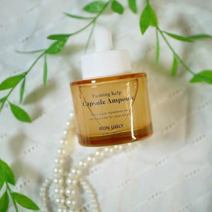 韓国のファへアワード第1位受賞した BON UGLY (ボンアグリー)ファーミングケルプカプセルアンプル50mlを使ってみたよ💖 光に透かしてよく見ると、小さいカプセルのようなつぶつぶしたものが見えます。こちらのカプセルは使うときに弾ける。抗酸化オイルカプセル✨ ニンジンから抽出した植物由来コラーゲン保湿因子が お肌の水分量を高めて弾力性を維持して細胞に栄養成分を補給してコラーゲンとエラスチンの生成を促進するそう