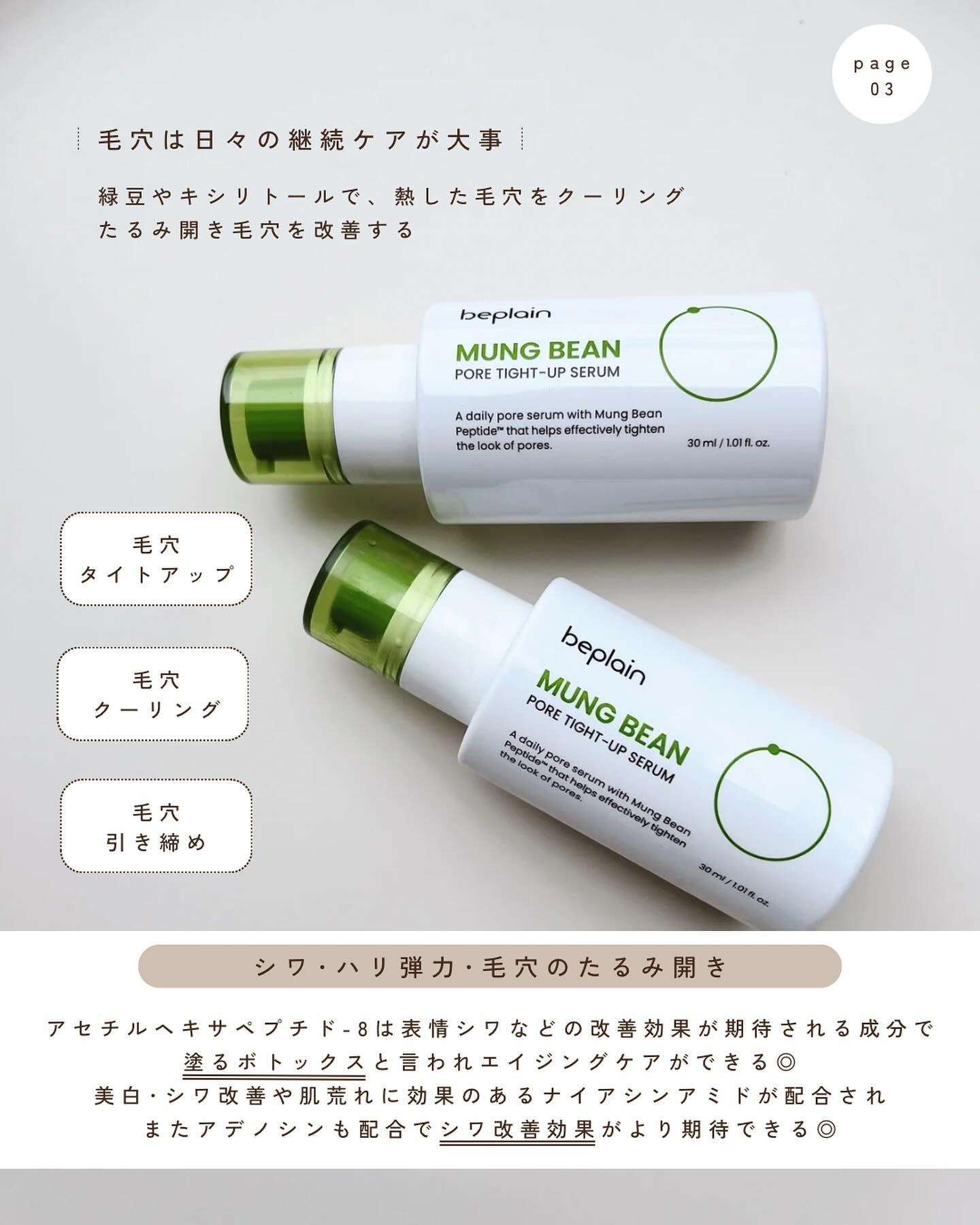 荒れた肌を部分的に落ちつかせる&クーリングケアできるスポットマスクパッドと毛穴、角質ケアラインの緑豆ライン💗 マスクパッドは8cmと大きめ、肌触りの柔らかい100%竹の生地でふわふわ✨️ 毛穴弾力に優れた成分、緑豆ペプチドで水分&弾力ケア ウォーターテクスチャーで爽やかでしっとりとしたうるおい感と弾力感🫛