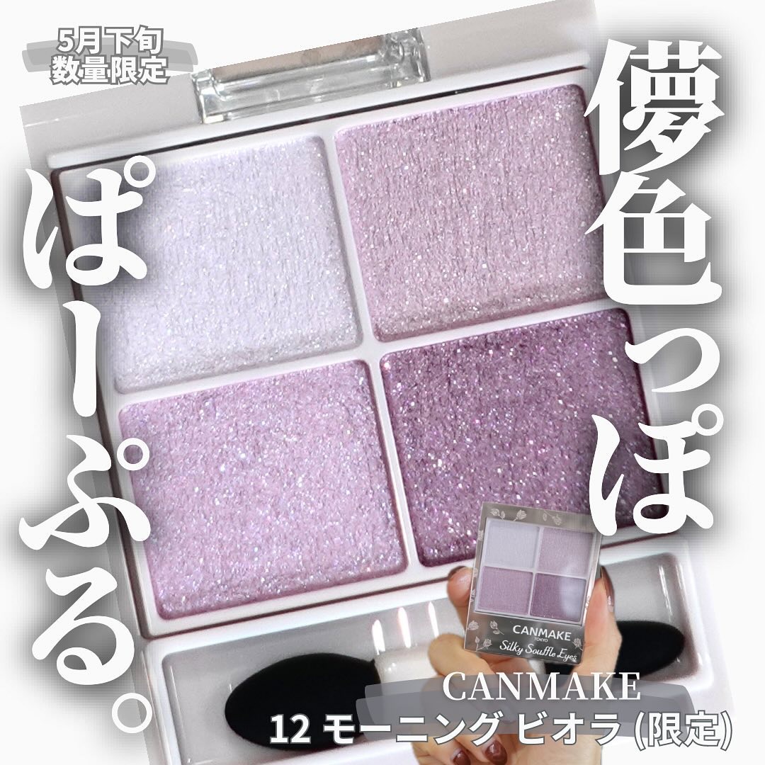 キャンメイクのパープルが可愛い🪻キャンメイクシルキースフレアイズ12モーニングビオラ淡目のピンクパープルのパレット🪻青ラメが入っていて綺麗✨透明感でるカラーで普段パープル使わないけどこれは可愛いなと思った💜#canmake#キャンメイク#シル...