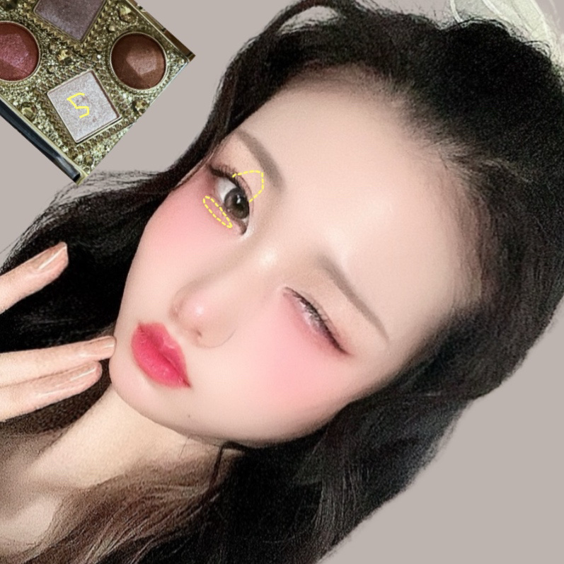 囲み目たぬき顔アイメイク○ヴィセアヴァンシングルアイカラー023REDBRICK目の周りを囲む。○リンメルプリズムクリームアイカラー016目尻側を囲む。(濃いめ)アイライナーを少し垂れ目気味にひく。○theSAEMカバーパーフェクトチップコン...
