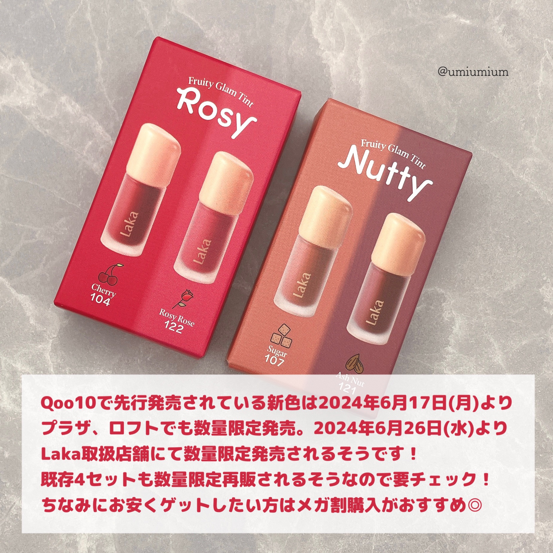 こんにちは。こんばんは。今回はLakaのフルーティーグラムティントミニデュオをレビューしたいと思います!【使った商品】Lakaフルーティーグラムティントミニデュオ#スプリングトーンエディション103ハミング117ゼタ【使ってみて】塗り心地はス...