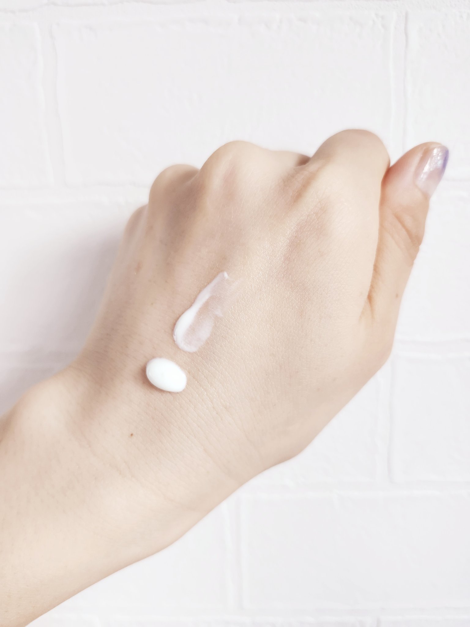 白い乳液状のクリームで、塗ると無色透明になり、白浮きやパール感がなく自然な仕上がりです。 軽い使い心地でスキンケア感覚で使え、特有の臭いが気にならないのも魅力です。 日焼け止め効果は実感しにくいものの、ベタベタしない軽い付け心地を求める敏感肌の方におすすめだと思います!