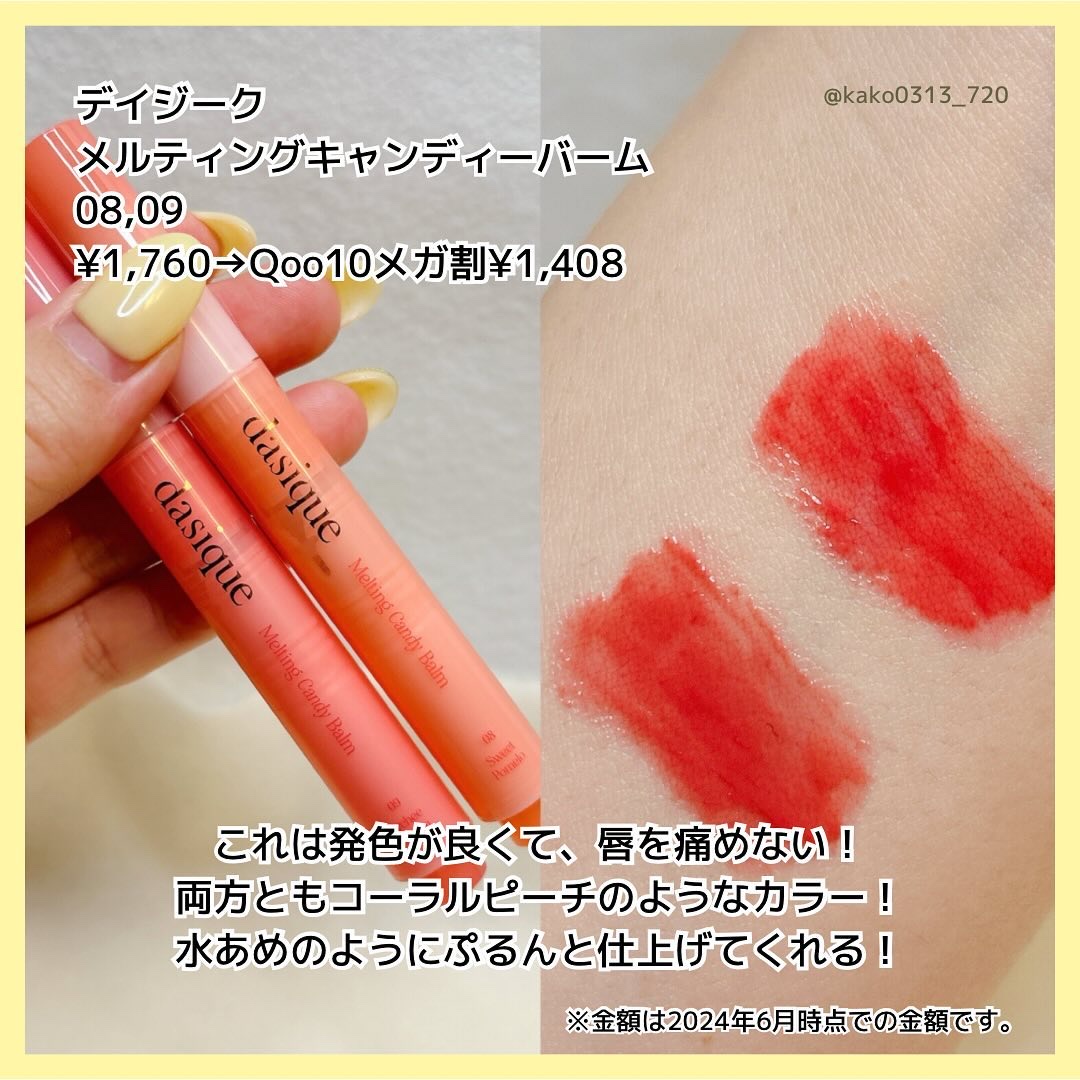 | 口紅・グロス・リップライナーランキング第61位 | ほんのりフルーツみたいな良い香りがします🍎 付けた感じのテクスチャーはぷるもち系ですね | 詳細を見る | |