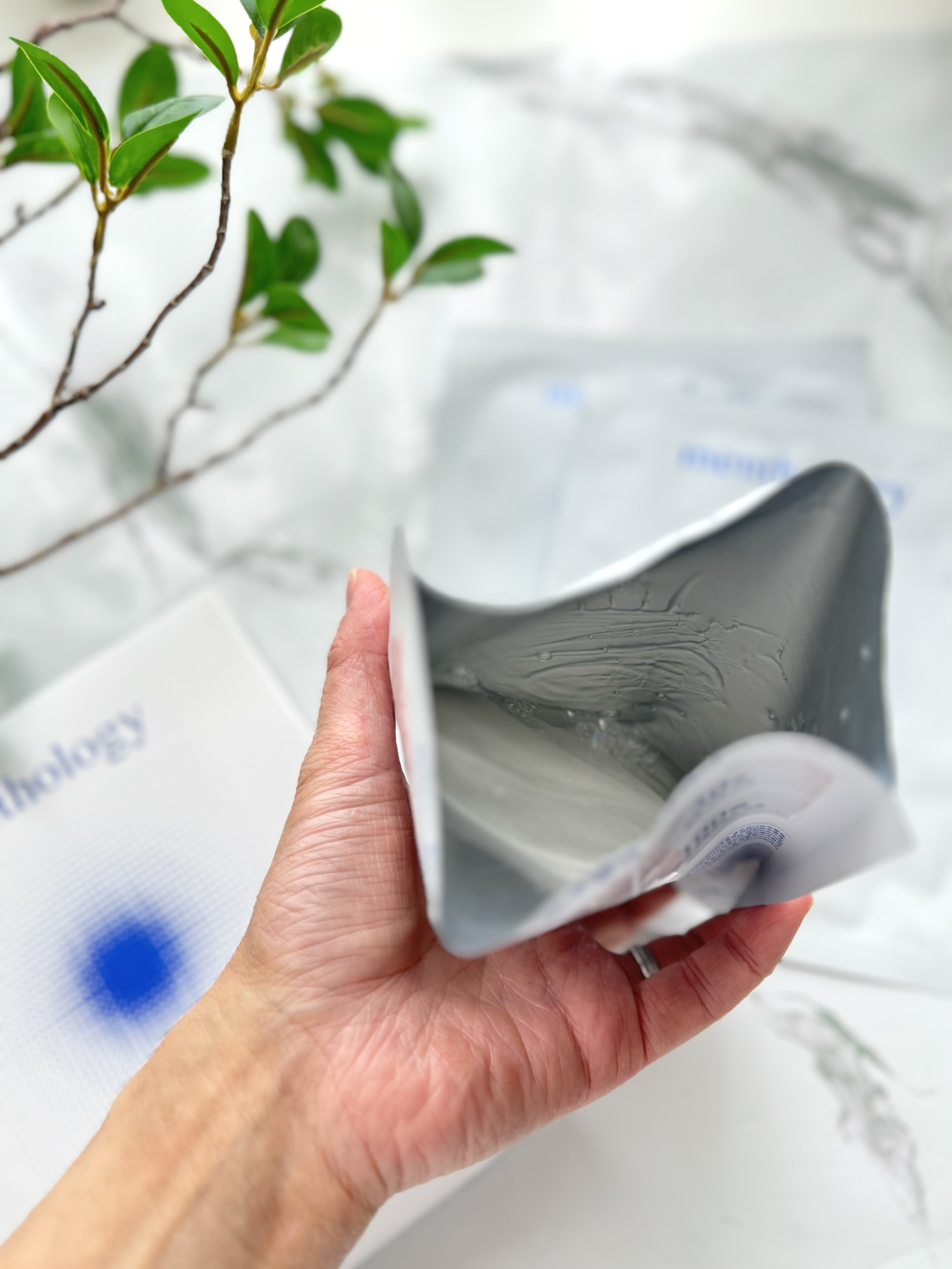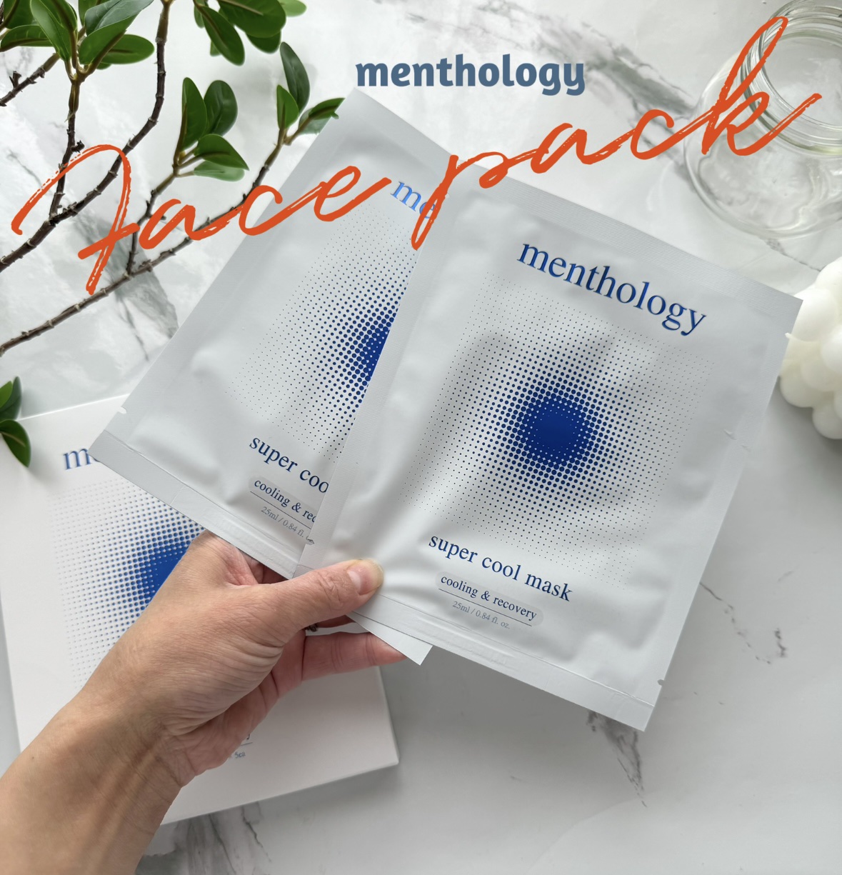 30分間心地よくクーリング、鎮静MENTHOLOGY スーパークールマスクをお試しです♪エッセンス内の水分袋が摩擦によって破裂し、心地よいクーリングと共に鎮静効果を期待できるマスクだそうです。・肌の表面温度を最大で12.8℃低下・外部刺激によ...