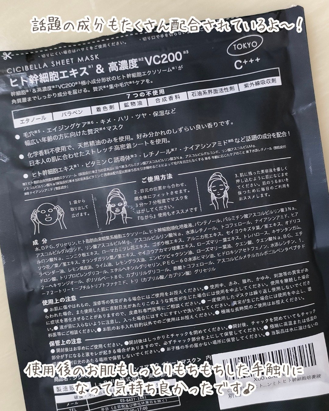 商品詳細情報CICIBELLA シートマスク ヒト幹細胞×VC200