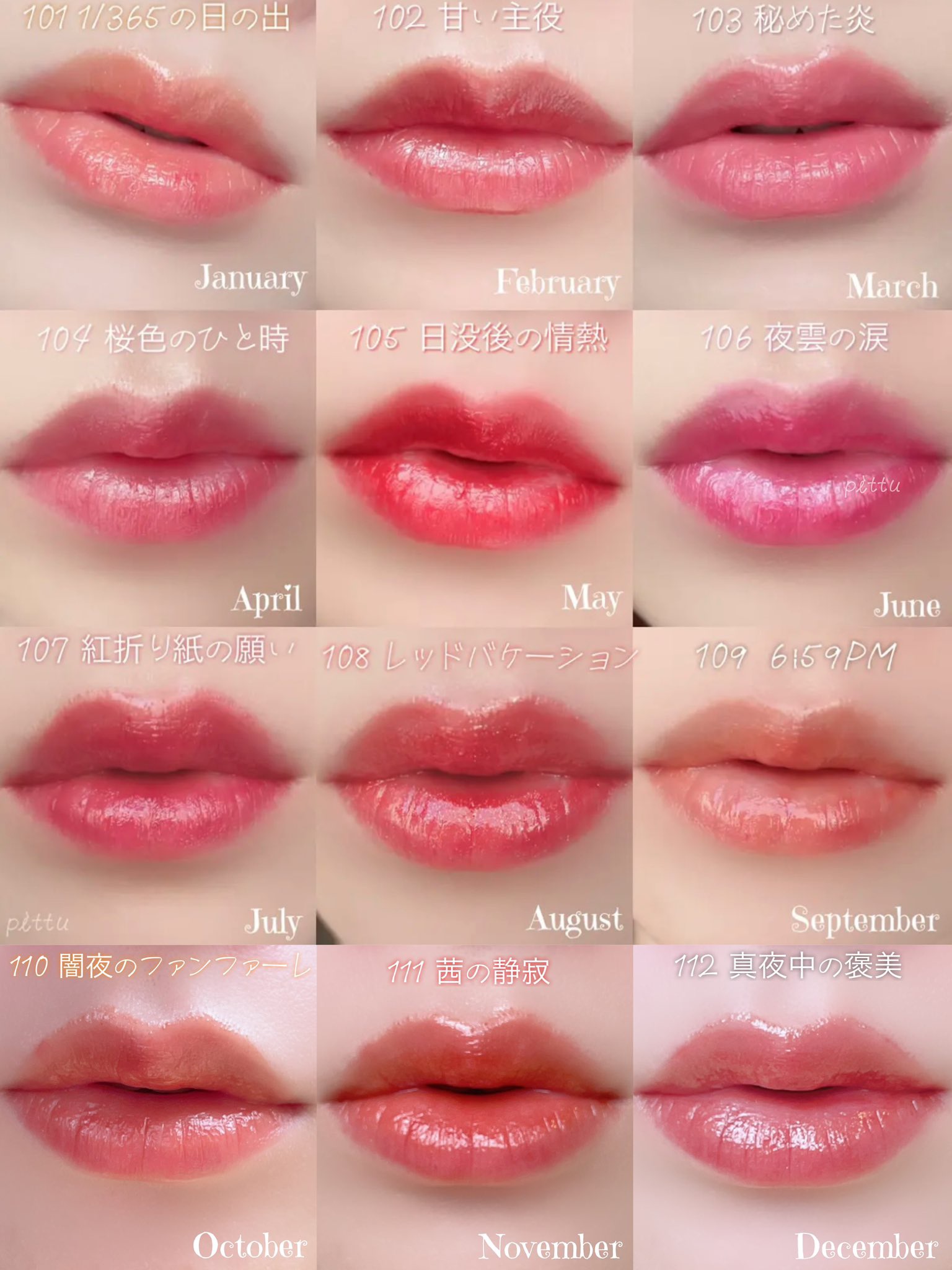 限定色含む手持ち全色徹底レビュー🍓KATEケイトリップモンスター🎗🎀。.:✨*゜🎀。.🎗:*゜🎀✨02ピンクバナナ05ダークフィグ062:00AM07ラスボス12誓いのルビー133:00AMの微酔112真夜中の褒美103秘めた炎104桜色のひ...