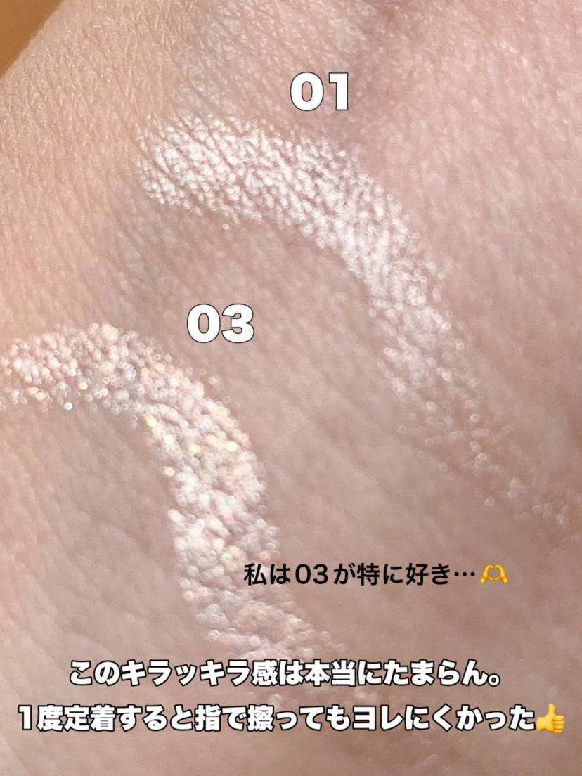 するっと描きやすいペンシルライナーでナチュラルな発色です🐣 高級感溢れるツヤ感が可愛いのと涙袋にはピッタリな輝きです! ブルベ夏さんが似合いそうなカラーで発色もちゃんとしてくれるので使いやすいです🦋