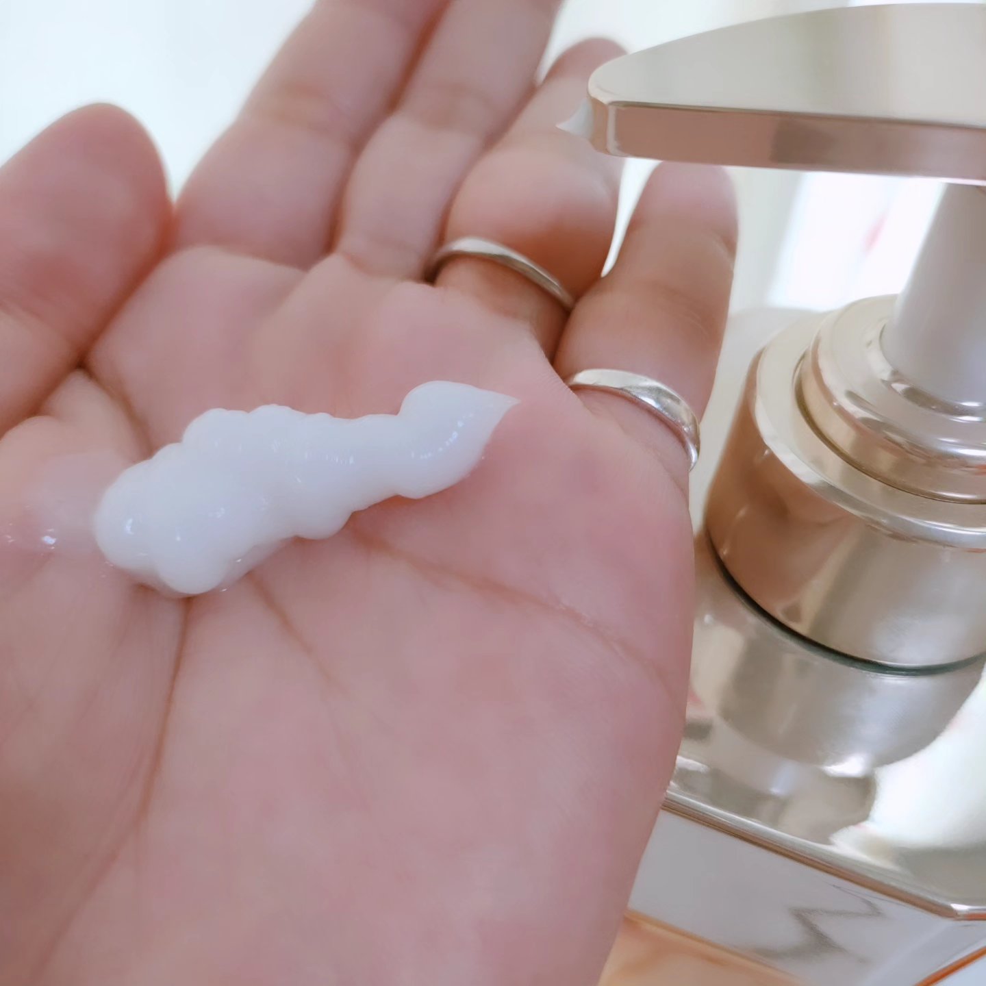 1.2プッシュで顔全体に広がる伸びの良さですが テクスチャーは重ためで はちみつを塗っているような感覚です。 気になる部分に先に塗り、上から数滴の化粧水で広げるのもよかったです。 →容器に容量がわかる目盛りがあるので残量がわかります。